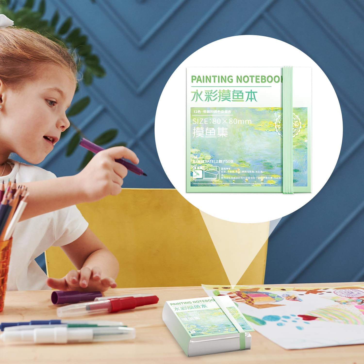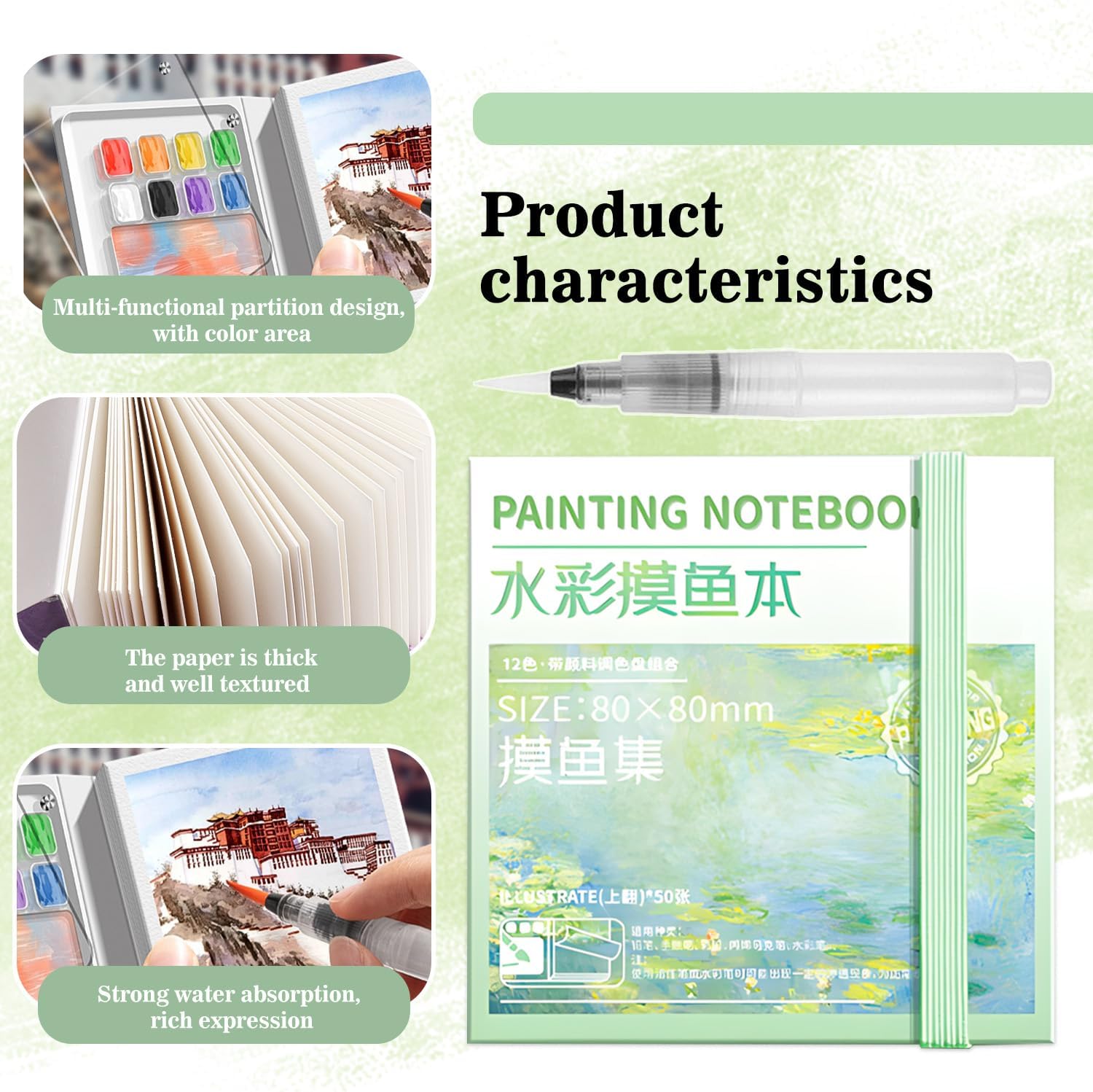 Hoogwaardig palet: een draagbaar tekenboek en palet zijn geïntegreerd in één. Het palet met 12 rasters is handig voor het mengen van verven en is een ideale keuze voor reizen schilderen.