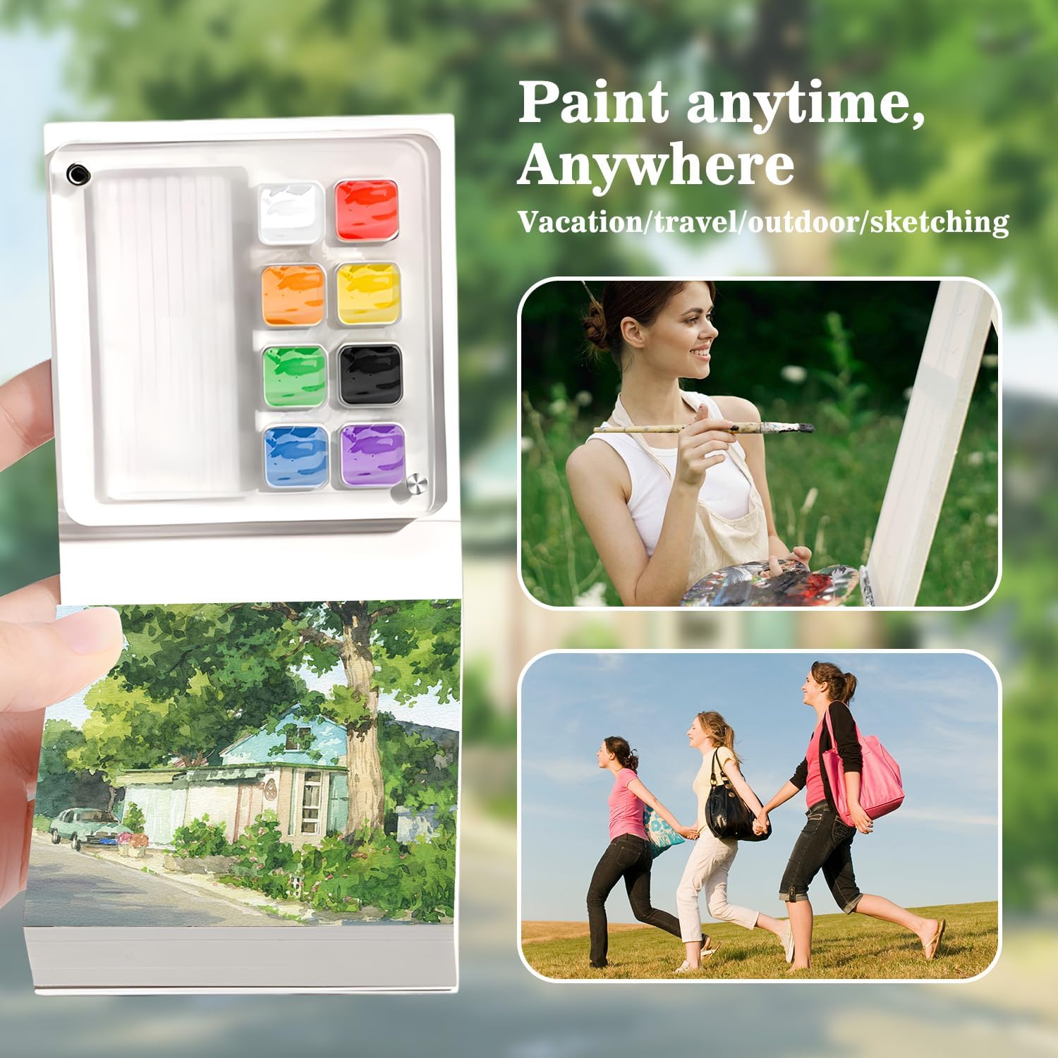Inhoud van het product: je ontvangt een set draagbare schildergereedschappen, waaronder een 12-cel aquarelpaletboek (inclusief een draagbaar schilderboek en palet), 2 waterpennen en 4 penselen, die gemakkelijk mee te nemen en te schilderen altijd en overal zijn.