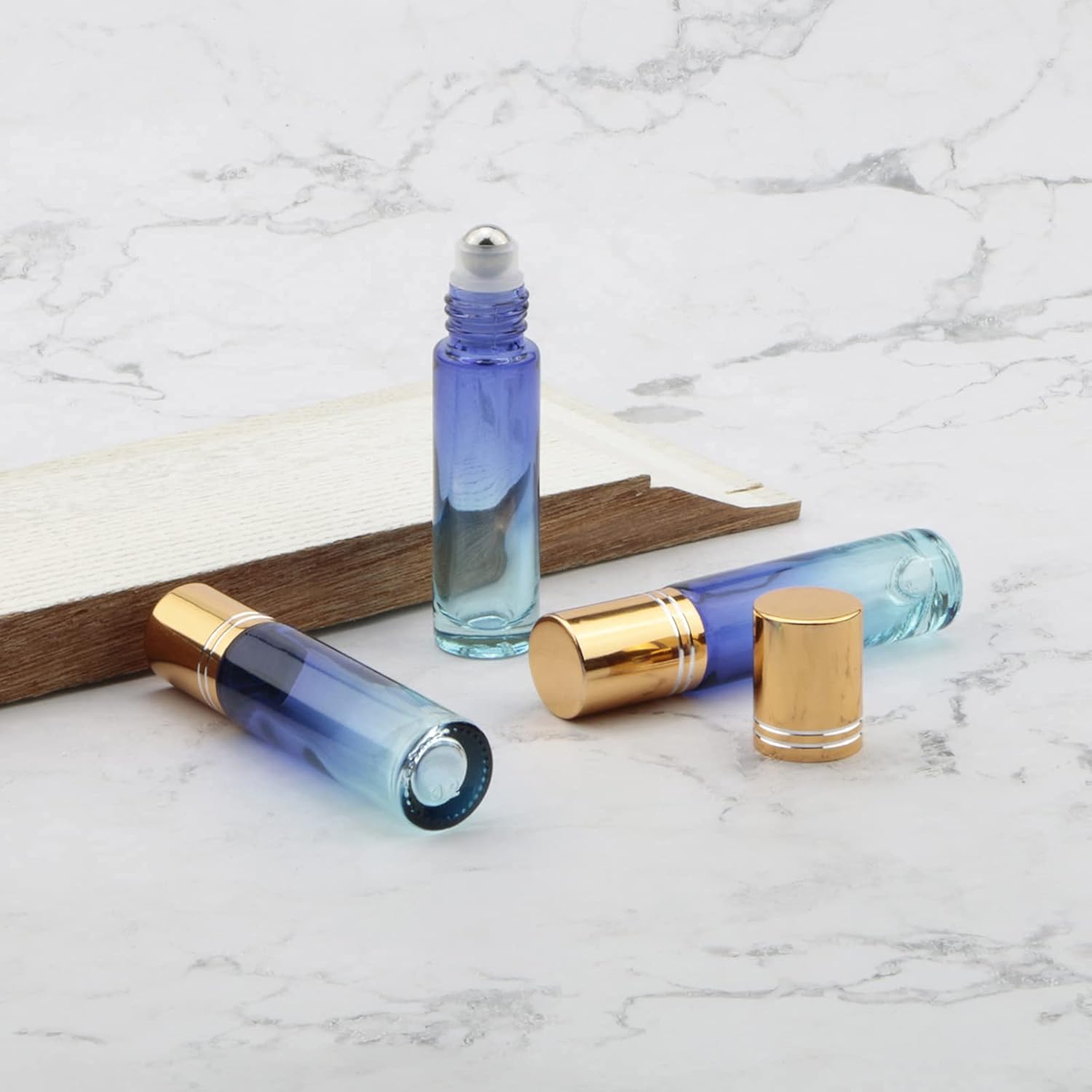 10 stks Essentiële oliën Roll on flessen, 10 ml navulbare lege glazen Rollerball flessen met Golden Cap, Perfect voor zelfgemaakte parfum geur aromatherapie oliën, blauw verloop