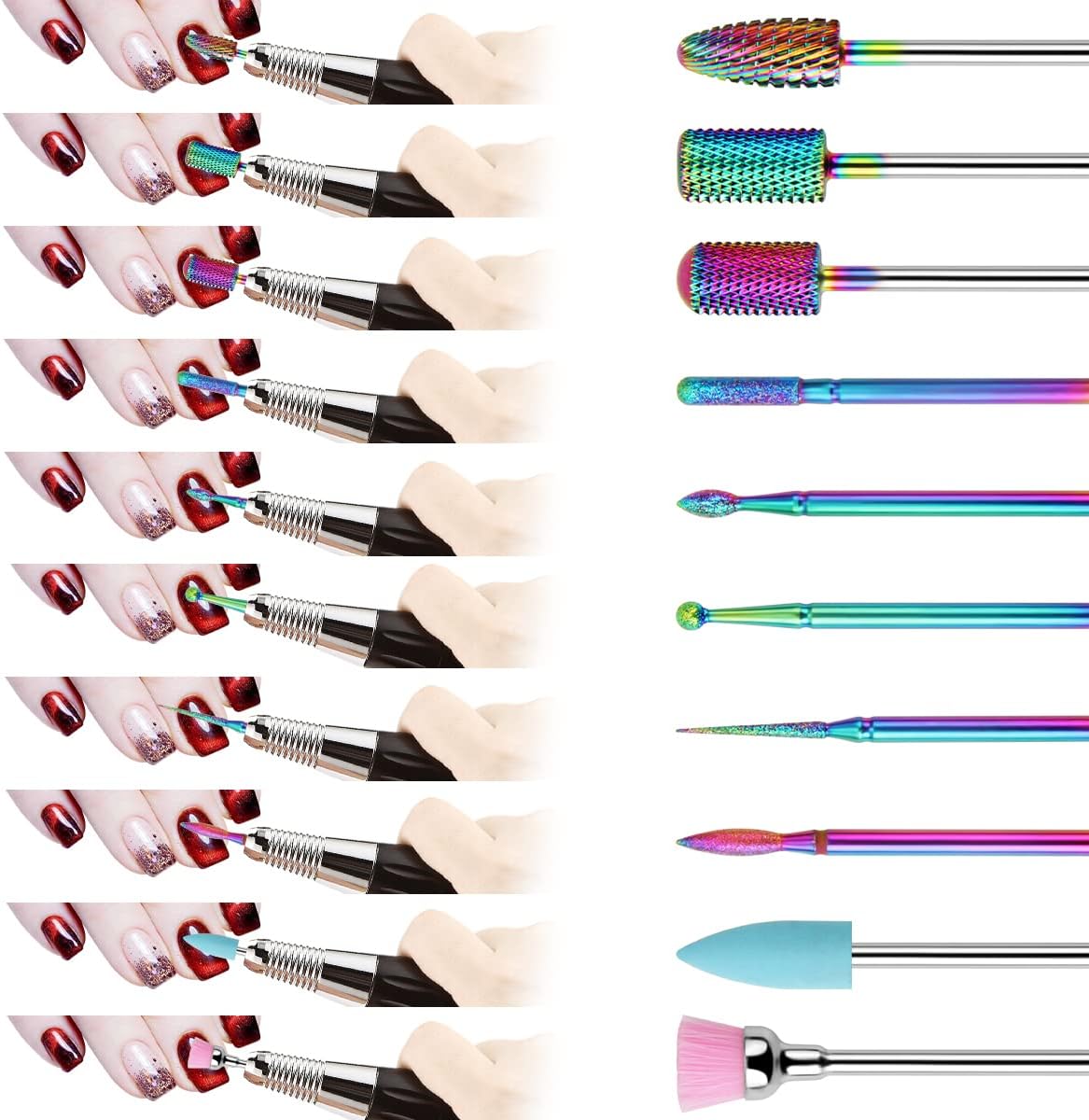 Professionele set: Er zijn tien verschillende nagelboren geschikt voor de meeste 3/32 inch boren. Ze kunnen worden gebruikt om het nageloppervlak te polijsten, zelfs penetreren smalle gebieden en diep reinigen van de zijde wol en nagelhuid om te voldoen aan uw slijpen behoeften.