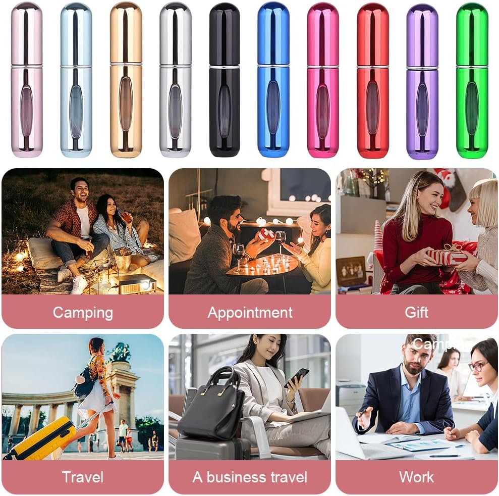 Klein en licht: 10-delige vernevelaar met elk 5 ml inhoud, compact en licht, ruimtebesparend en eenvoudig mee te nemen. Perfect voor het opbergen van tassen, portemonnees en bagage, kan altijd en overal worden gebruikt, bijvoorbeeld op reis, bij het trainen, werken en meer.