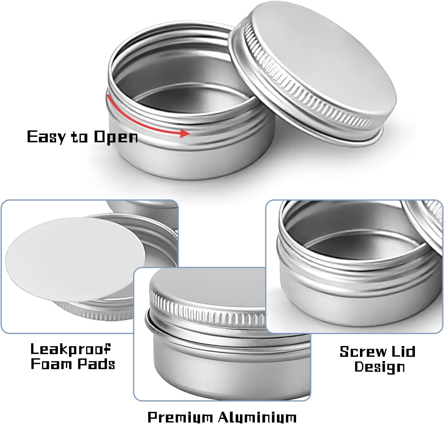 [Aluminium materiaal]: ronde cosmeticacontainers zijn gemaakt van hoogwaardig aluminium, met een goed afgedichte spiraalvormige draaidopstructuur die lekkage effectief voorkomt en duurzaam, veilig en niet-giftig is.