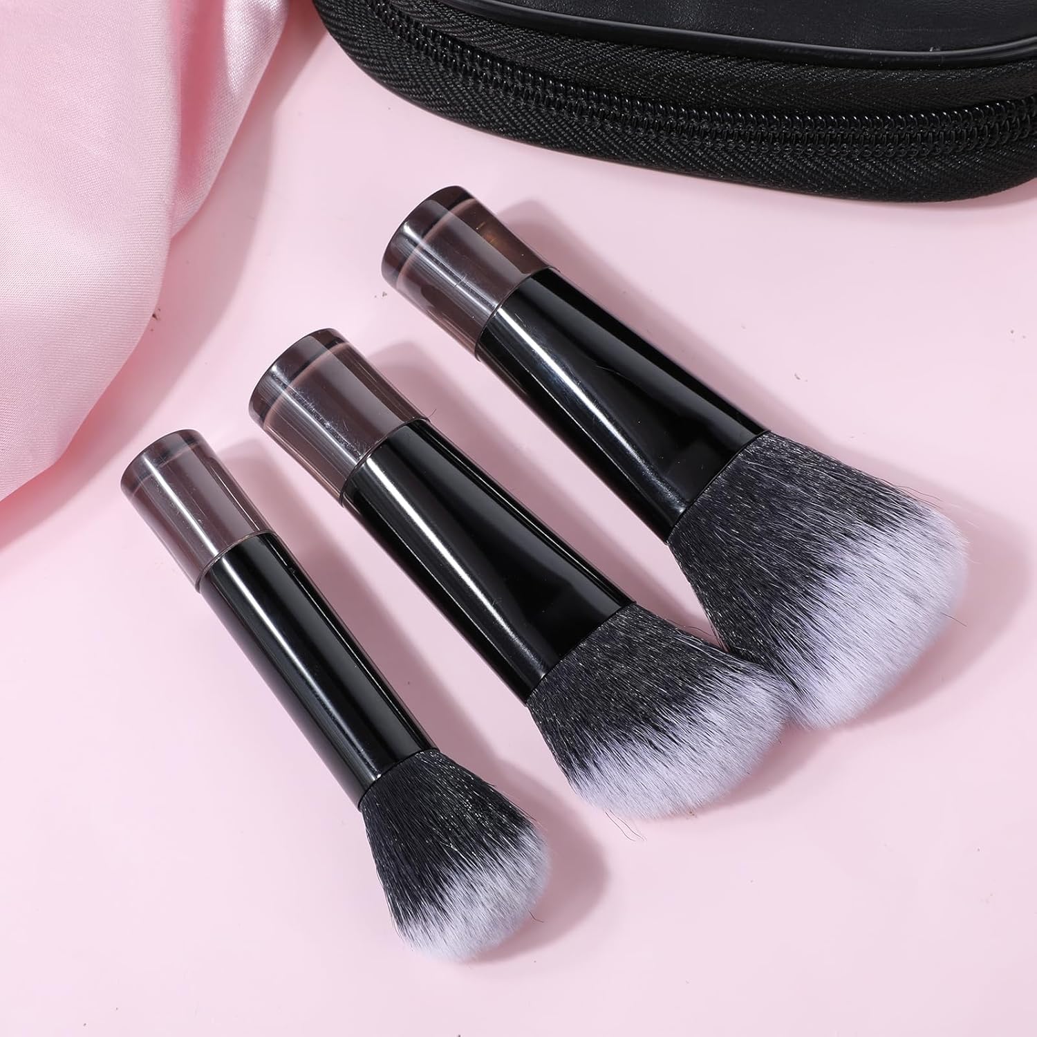Hoogwaardig materiaal: deze reismake-upborstels zijn gemaakt van zachte vezelharen en aluminium buis. De borstelharen zijn dicht en dik, verminderen het afstoten en zorgen voor een maximale levensduur van de borstel, wat helpt om borstelsporen bij het aanbrengen van cosmetica te verminderen