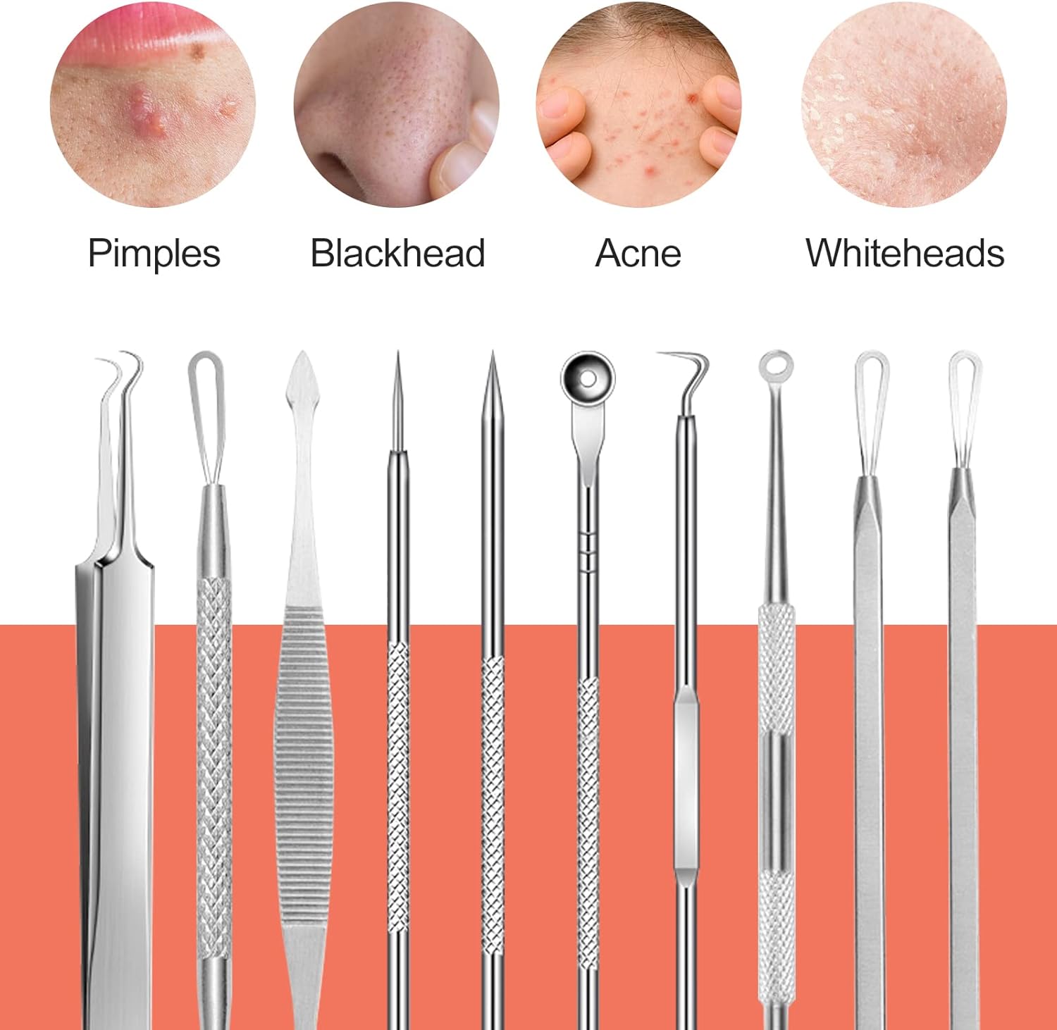 10 stuks mee-eterverwijderaar, puistjes-uitdrukkingsgereedschapsset van roestvrij staal, comedonenknijper met opbergdoos voor neus en gezichtsverzorging