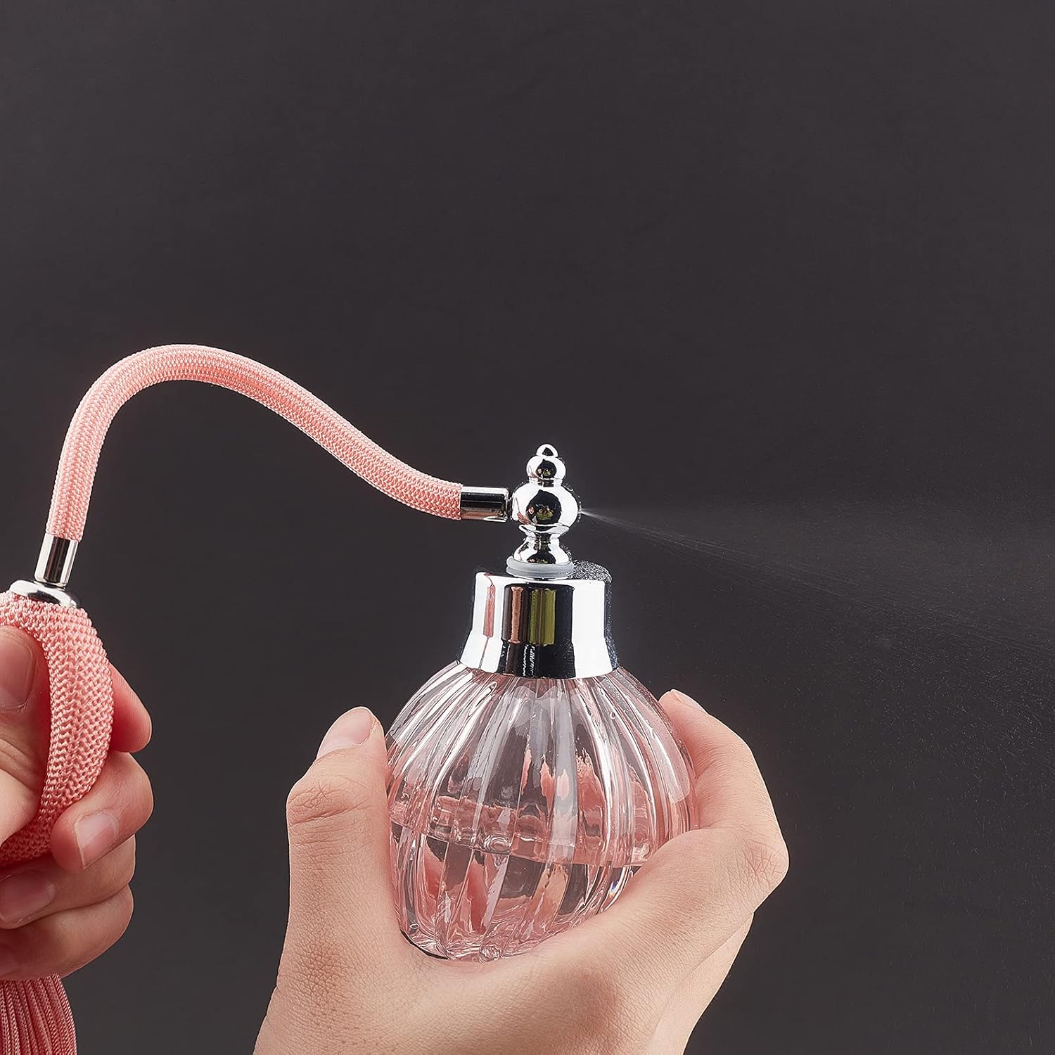 Gorgecraft Vintage navulbare parfumfles, roze, kristal, parfum, spuitfles, helder glas, parfum, verstuiver met lange kwast, kunststof, trechter, hopper, druppelaar