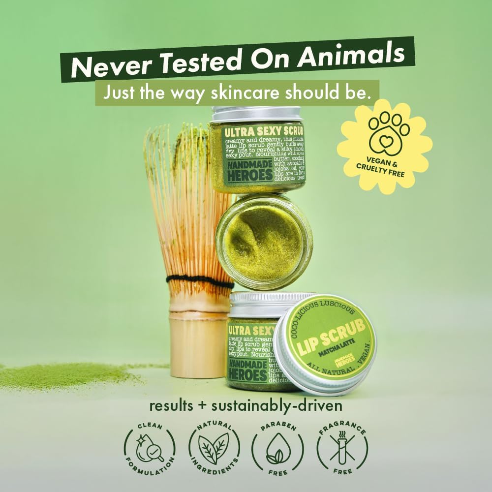 100% natuurlijke Handmade Heroes Lip Scrub, Vegan Coconut Lip Exfoliator – Zachte Exfoliant, Sugar Lip Polish en hydraterende voor schrale en droge lippen, 1 oz (Matcha Latte)