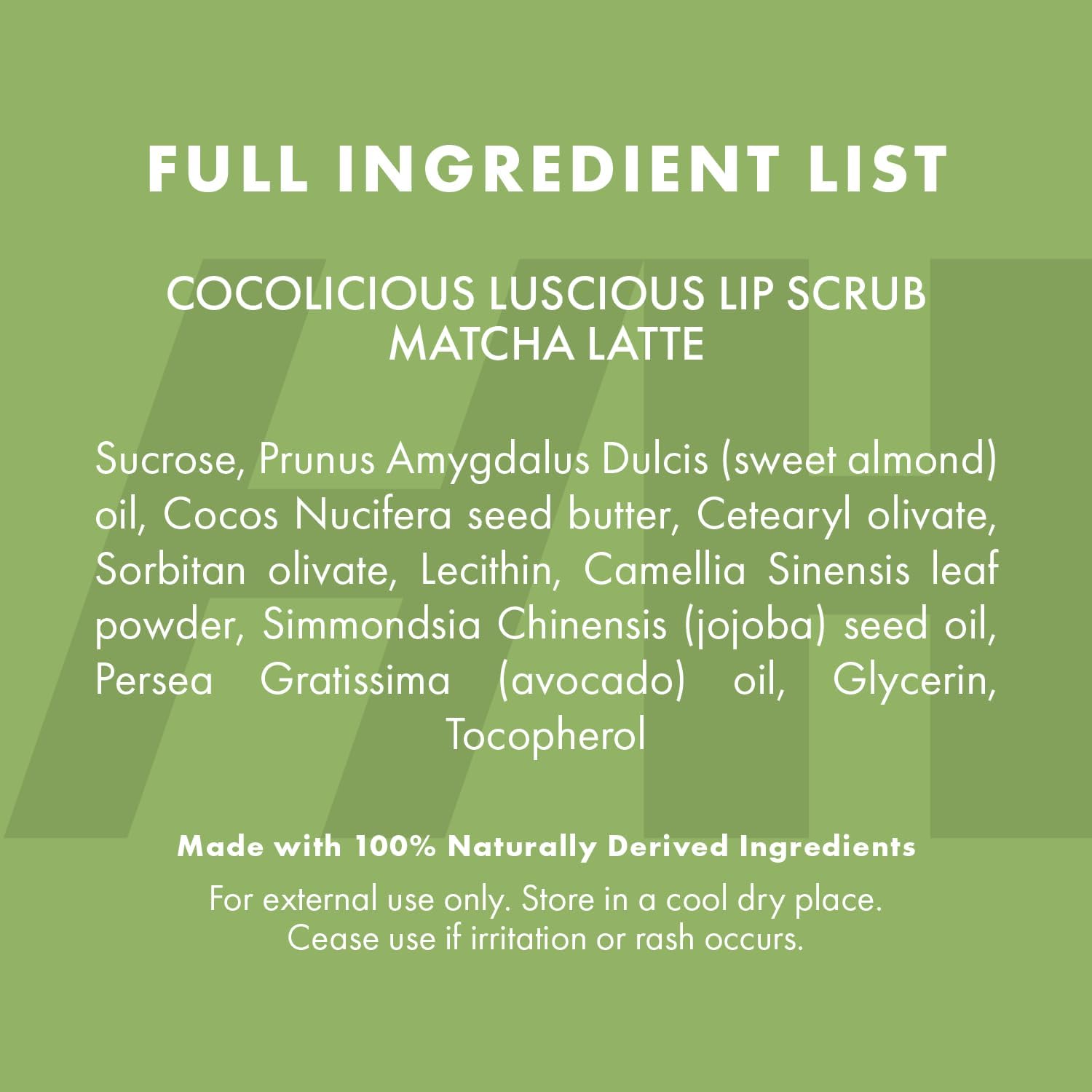 Een ultra sexy scrub voor een ultra sexy steenbolk. Onze Cocolicious Matcha Latte Luscious Lip Scrub scrubt zachtjes en rehydrateert met virgin kokosolie en kokosvlees, waardoor je delicate lippen glad, zacht en zeer verleidelijk blijven. Deze natuurlijke lip scrub is zo gemakkelijk te gebruiken omdat het slechts droge en schilferige lippen wegblaast met slechts één applicatie. Deze lipscrub vermindert ook tekenen van vroegtijdige veroudering op de lippen door dode huidcellen te verwijderen en opnieuw sappige, frisse lippen te onthullen. Het helpt de lippen te verzachten, verzachten en verheldert de lippen en verbetert zelfs de pigmentatie en verkleuring van de lippen na verloop van tijd. Het helpt ook lipmasker, lippenbalsems en andere lipbehandelingen beter door te dringen om de lippen vocht en hydratatie te behouden. Deze lipscrub kan ook worden gebruikt om lippen te primen voor lippenstift of andere lipmake-up producten door een glad canvas te creëren zodat het lipproduct gemakkelijk glijdt en op je lippen blijft. Het is een zachte peeling die geschikt is voor gevoelige lippen, eczeemlippen, koortsblaasjes en andere schrale en droge lipproblemen.