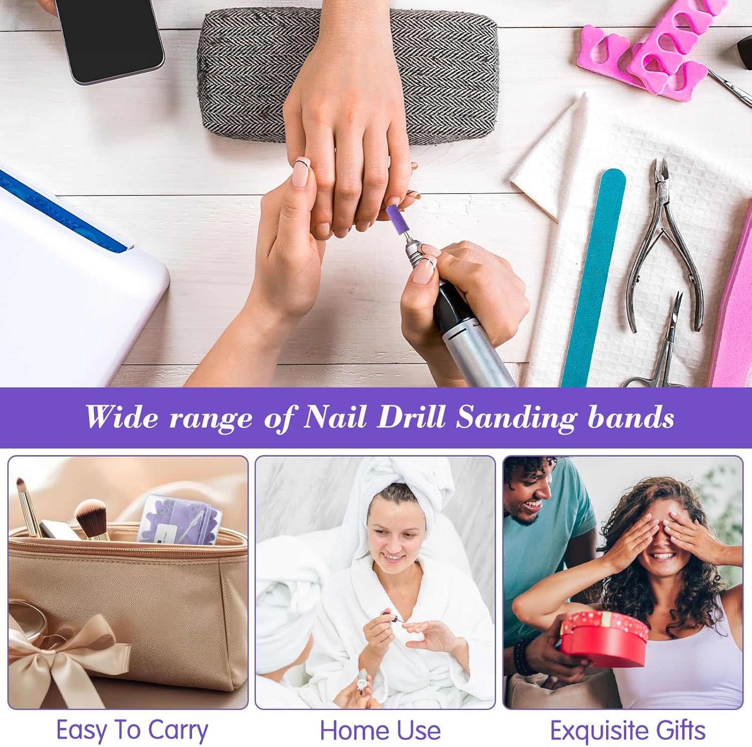 【Easy to Use】These mini nail drill sanding belts ensure a smooth surface. Select an abrasive belt in place over the thorn drill and gently apply pressure to the surface of the bed. 180 grit sanding belts work perfectly on the natural nail and cuticle with the low speed of your file. The sanding drill is perfect for use with nail drill bits and other nail sanders.