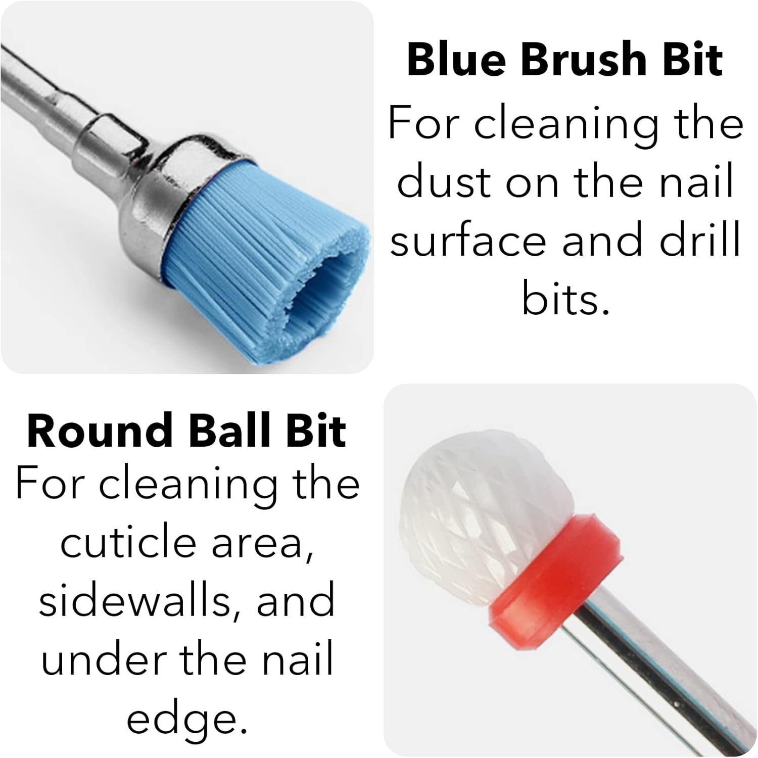 11 x 3/32 Inch Kit: Deze set bevat in totaal 10 verschillende bitjes voor nagelboren en 1 schoonmaakborstel, die geschikt zijn voor de meeste 3/32 inch boren. Ze kunnen gebruikt worden om de rand en het oppervlak van vingernagels te polijsten en om hangnagels en eelt rond de zijwanden van vingernagels te verwijderen.