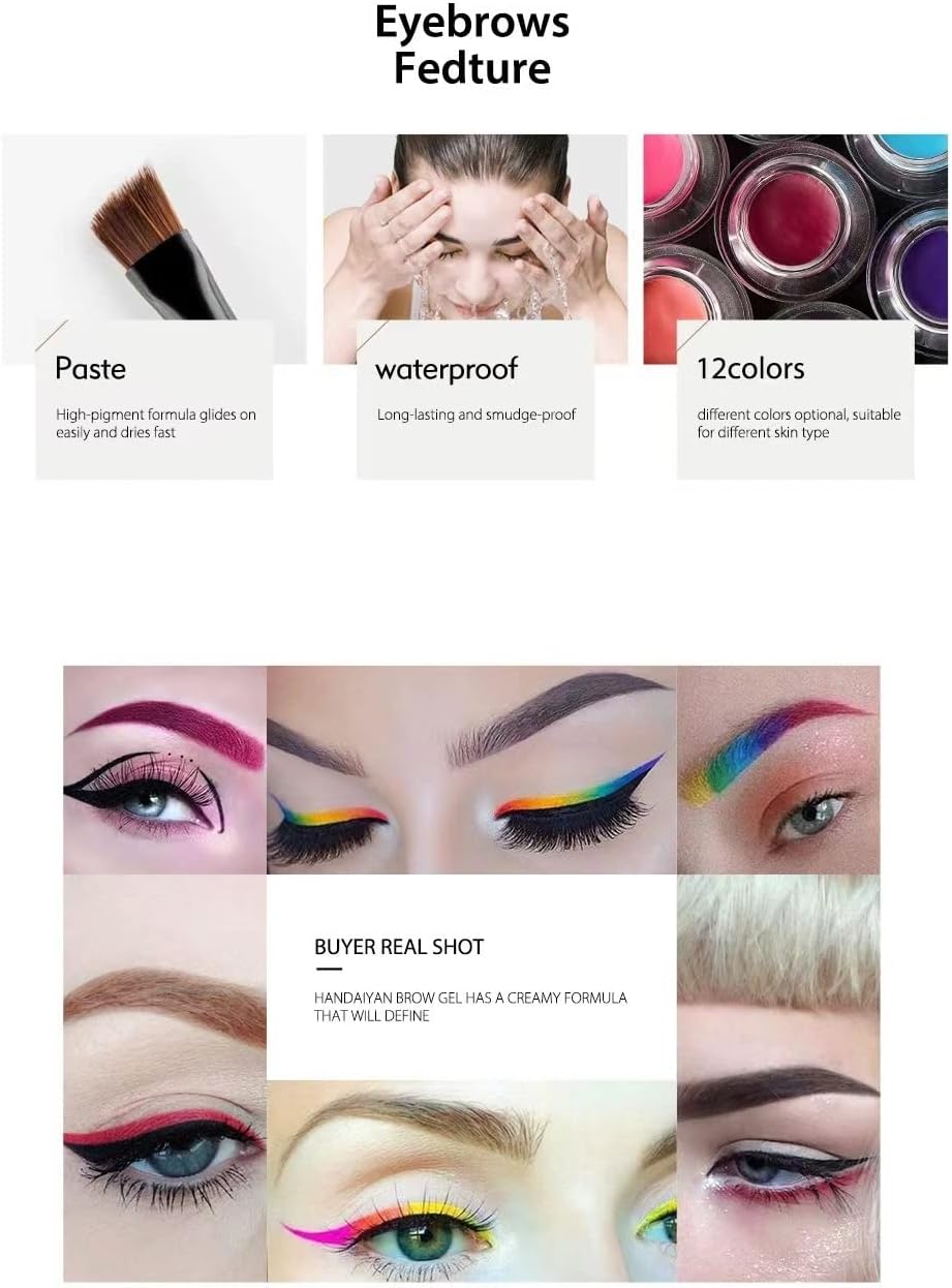 【12 Colors to Choose From】 – 12 different colors are colorful like the rainbow, which has smooth and vivid effects due to its high chromaticity. This kind of eyebrow paint set is perfect for both professional salon and personal use.