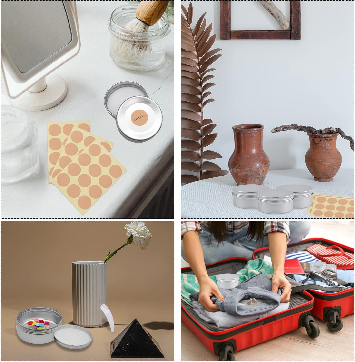12 stuks 50 ml aluminium lege blikjes met schroefdeksel voor op reis, draagbaar, kleine metalen doos met 2 stuks ronde stickers voor lippenbalsem, lotion, crème en cosmetica, zilver