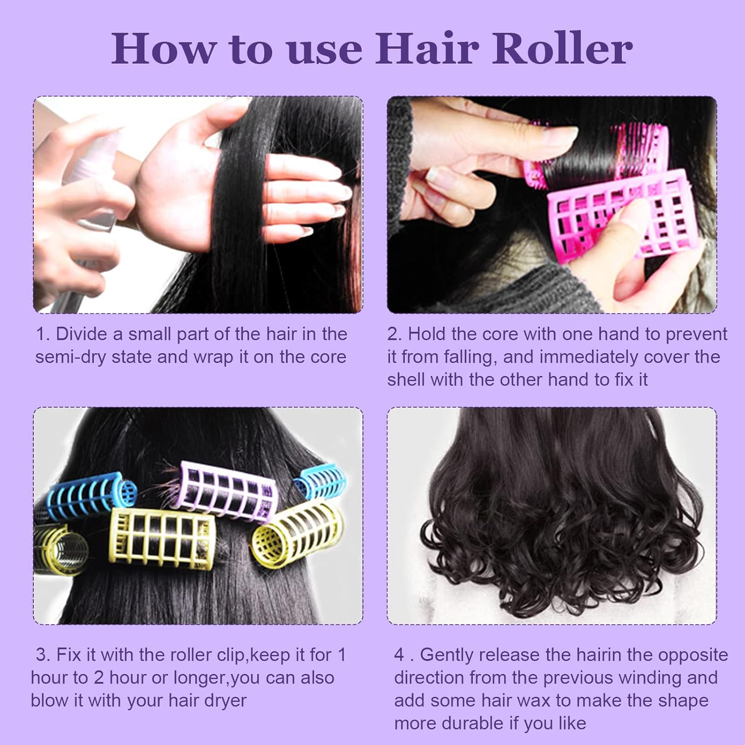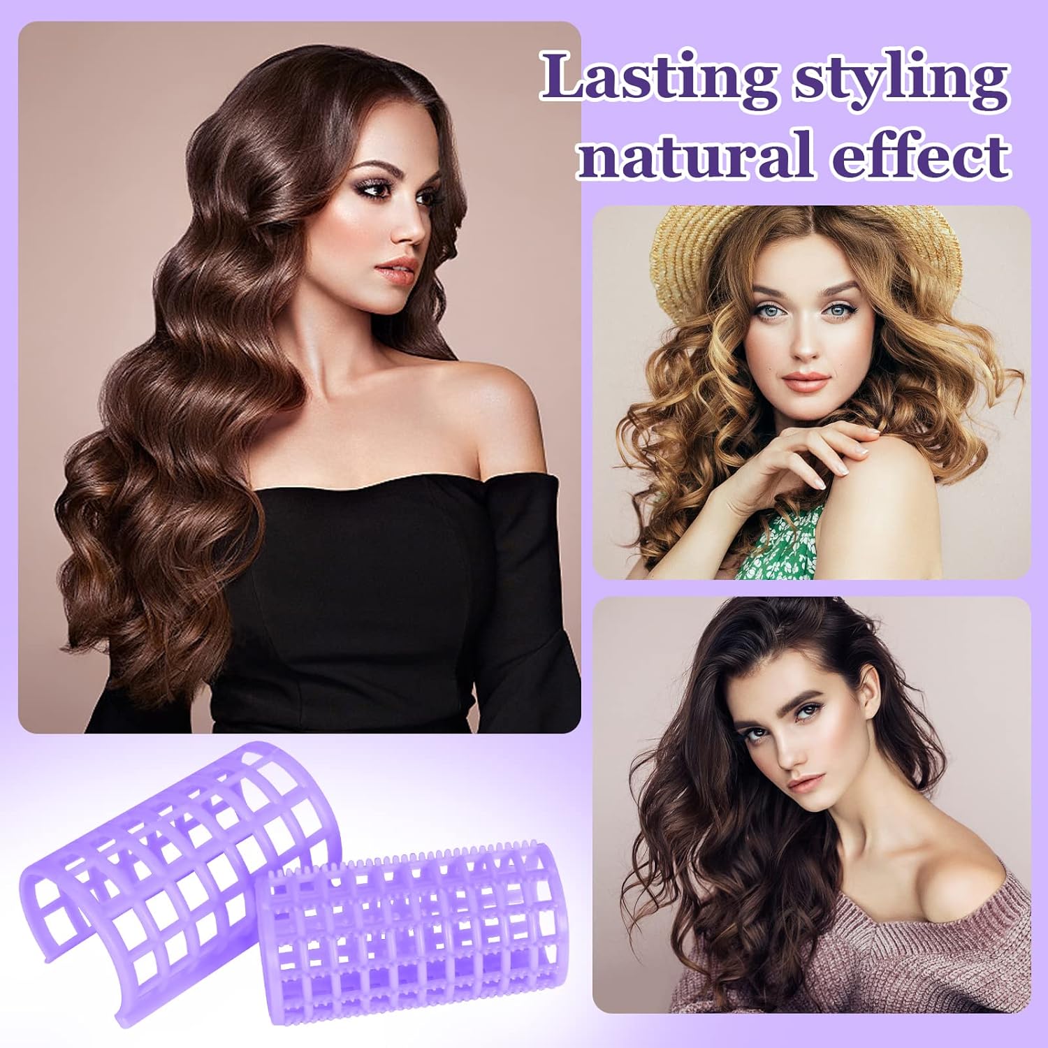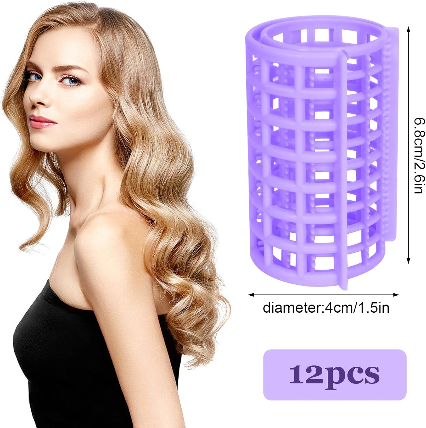 12 stuks krulspelden, kunststof haarrollers, haarrollers, zelfklevend, 36 mm grote krullen, haarkrullers voor lang, middelgroot en klein haar, kappers (paars)