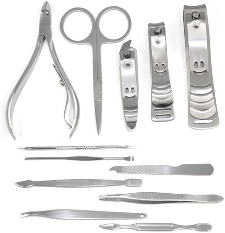 Deze praktische set maakt het mogelijk om je gereedschap georganiseerd te houden en is ideaal voor onderweg. 12-delige set van hoogwaardig wolfraamstaal, modieus kunstleren etui, ideaal voor thuis of onderweg, inclusief nagelknippers, nagelriemsnijder, wenkbrauwclip, neushaartrimmer, ca. 17,5 x 10 cm