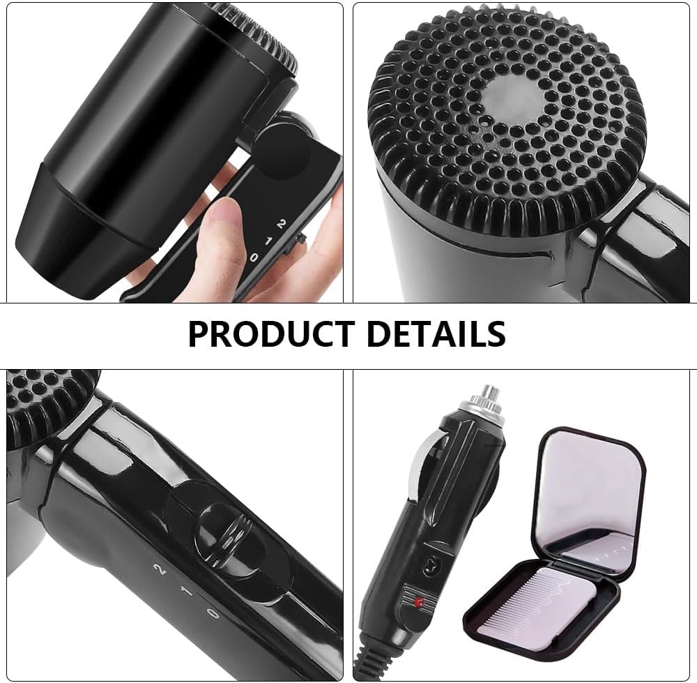 Klein en draagbaar: 12 V haardroger voor in de auto, kan eenvoudig in de auto 12 V sigarettenaansteker worden gebruikt, de haardroger kan worden opgevouwen, compact en licht, zeer geschikt voor gebruik in de auto, gemakkelijk mee te nemen bij het uitgaan