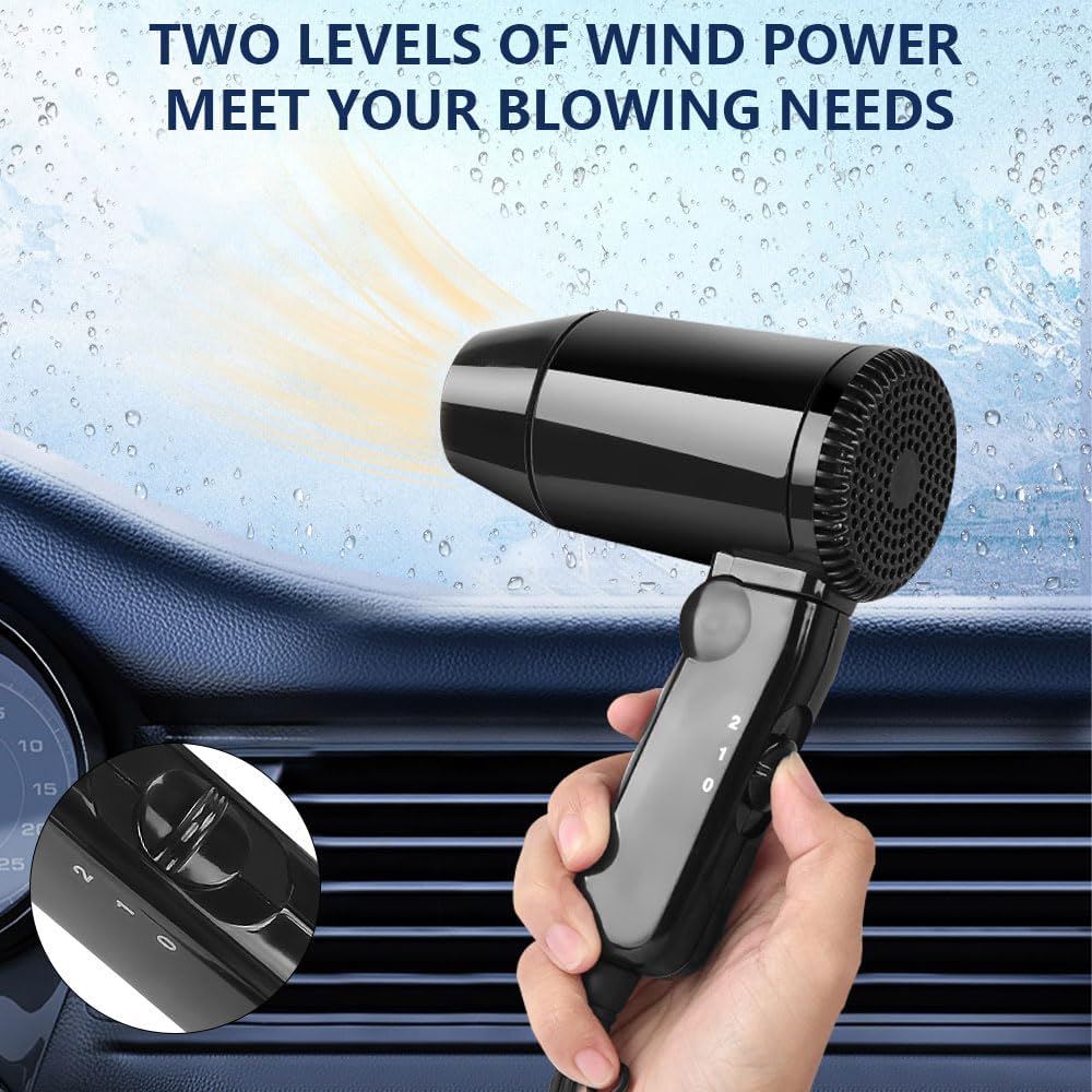 Brede toepassing: de haardroger voor de auto 12 V-aansluiting kan in meerdere scenario’s worden gebruikt, bijvoorbeeld B. In de winter, wanneer de temperatuur laag is, kan het worden gebruikt om waternevel op de autoruiten te verwijderen, sneeuwvlokken, waaien haar, zwemmen met nat haar, regengedrenkte kleding enz