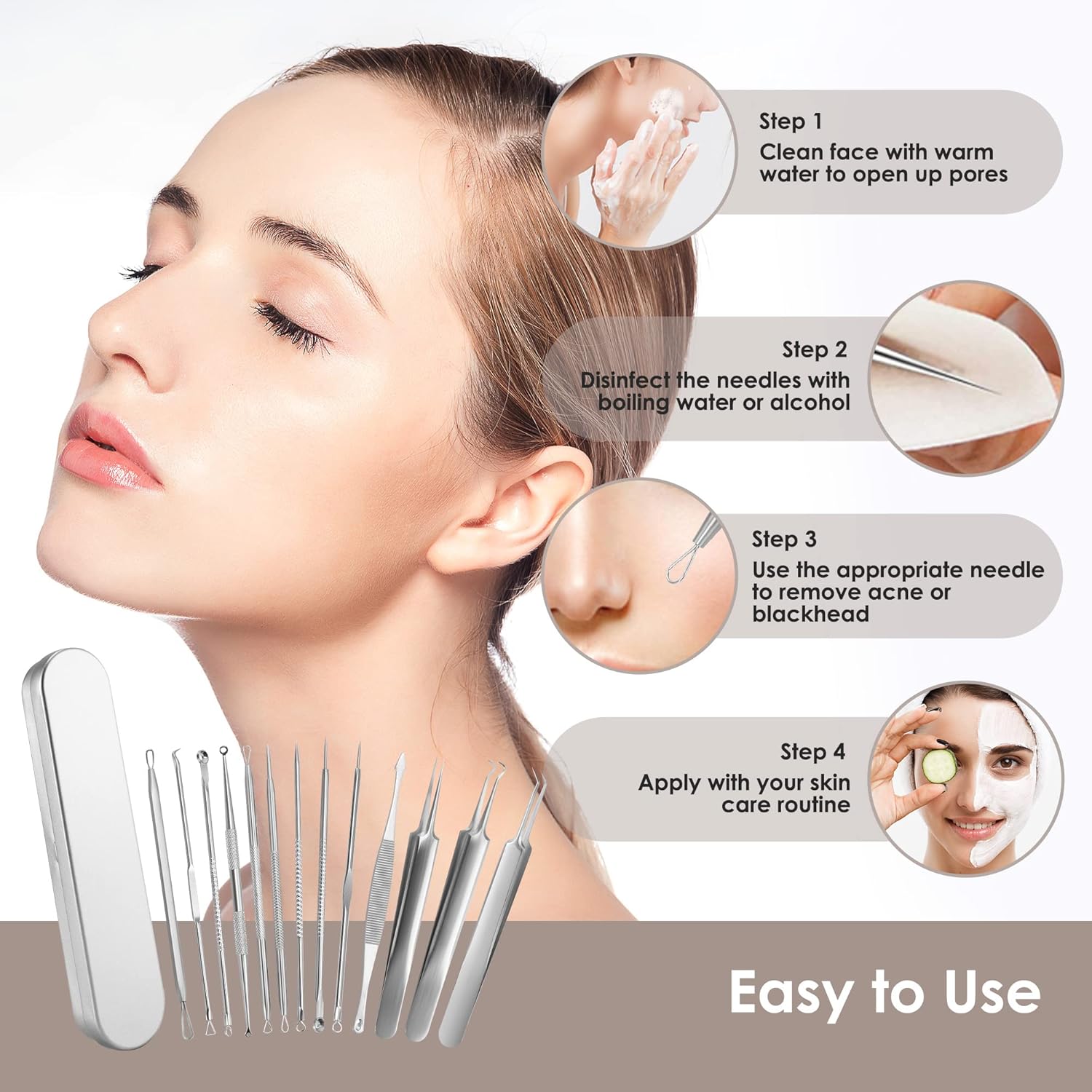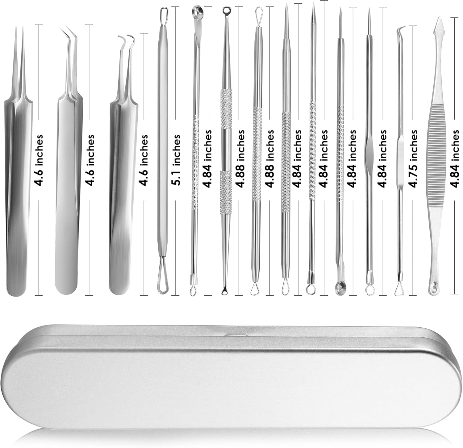 Gemakkelijk mee te nemen: 13 mee-eters verwijderingsgereedschap worden geleverd met een opbergdoos om je gereedschap georganiseerd te houden en gemakkelijk mee te nemen op reis.