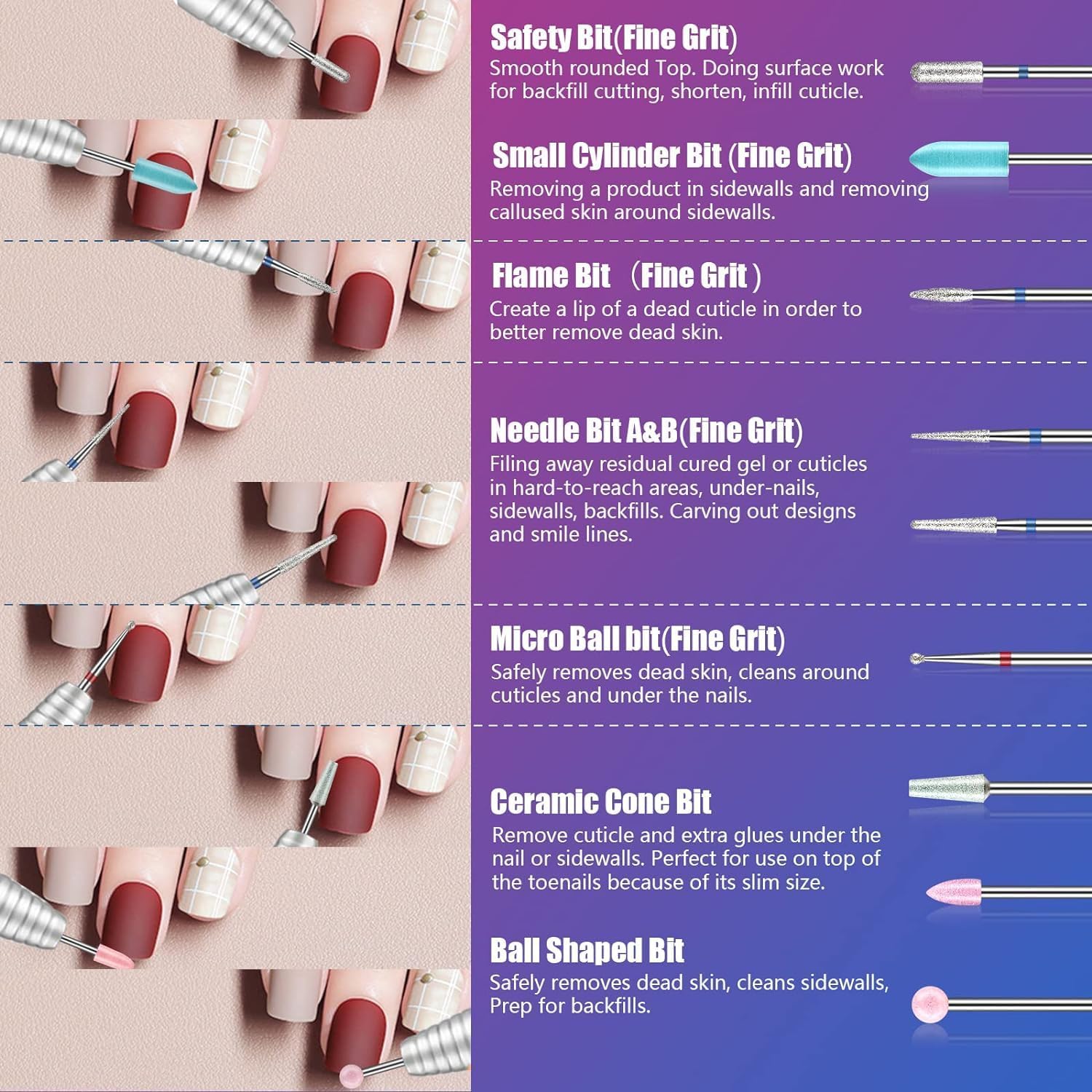 Past bij al uw behoeften: het is niet alleen handig voor het boren, maar ook voor het polijsten. Je kunt het gemakkelijk gebruiken voor het reinigen van nagelriemen en acryl, het verfijnen en vormgeven van nagelranden en het verwijderen van dode huid. Zorgt ervoor dat je het soort afwerking in de nail Art kunt krijgen die je wilt.