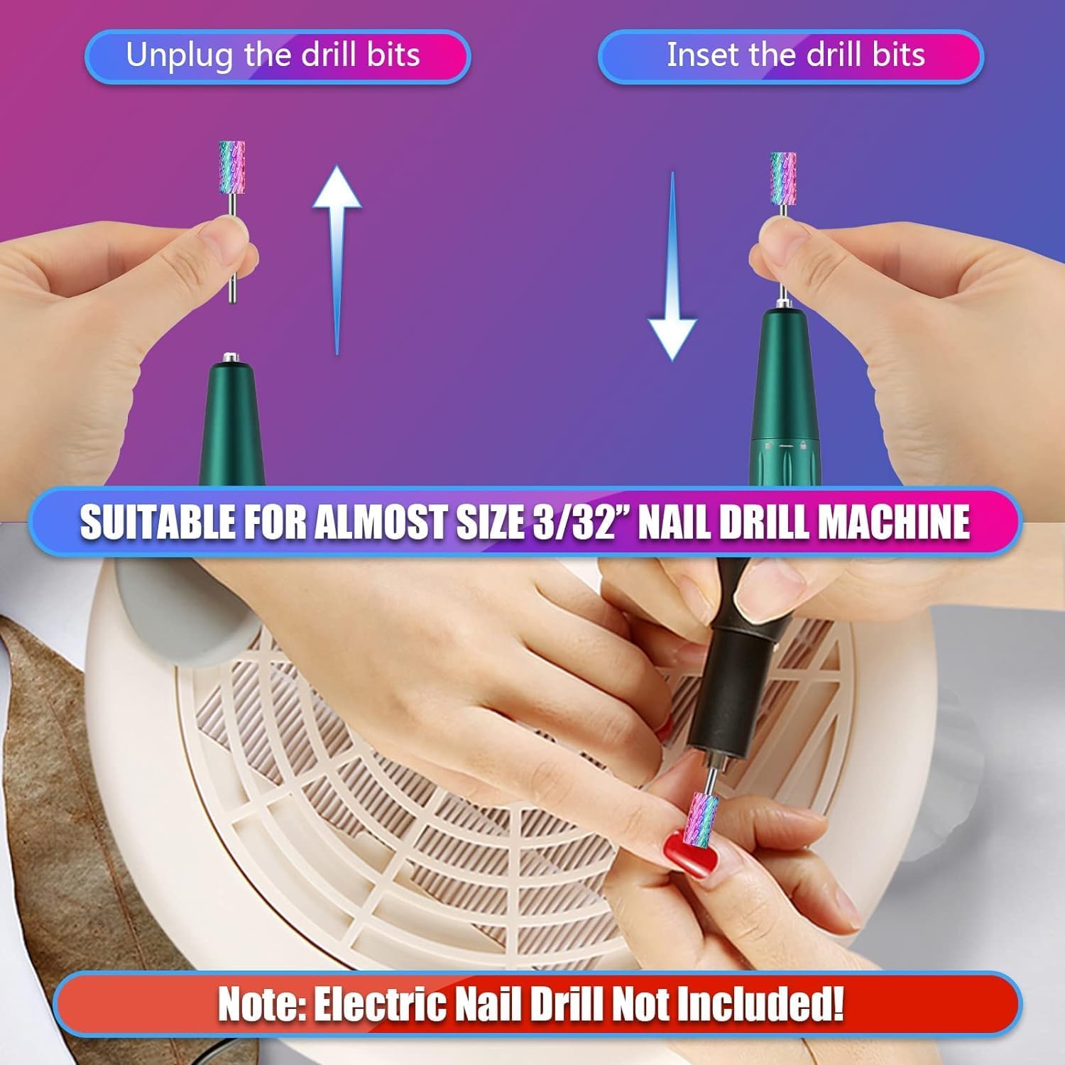 VEELZIJDIG: Universele 3/32 inch nagelboor past op de meeste elektrische of oplaadbare manicure nagelvijl machines. Perfect voor nagelsalon, schoonheidssalon, spa of persoonlijke manicure pedicure, doe-het-zelf nail art thuis.