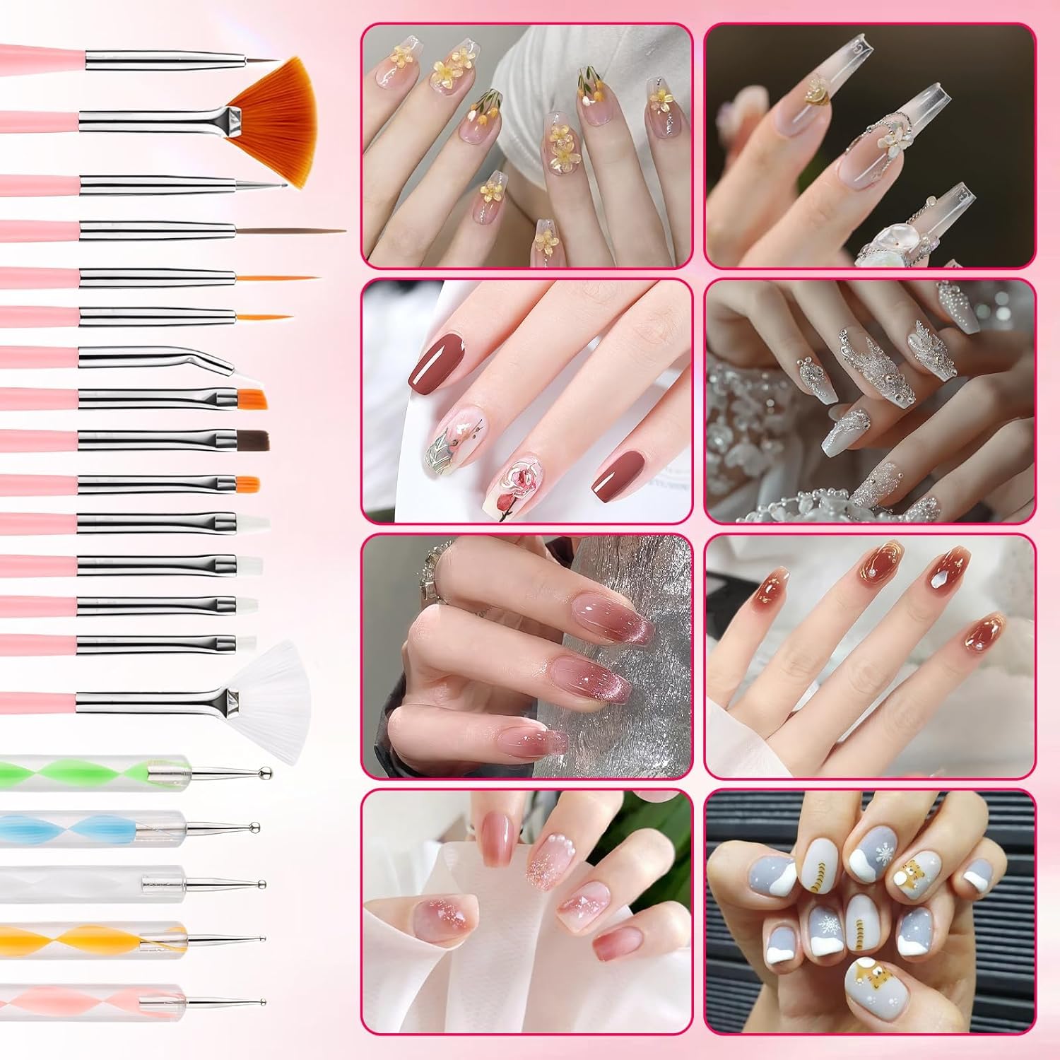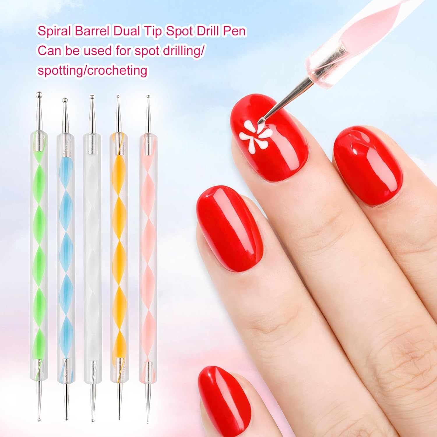 15pcs Nail Art Pens Mixed 5pcs Drill Pens Nail Art Brushes Set, Acrylic Nail Brush Painting Pen and 5pcs Nail Dotting Tools, Nail Pen Designer Nail Art Painting Kit
