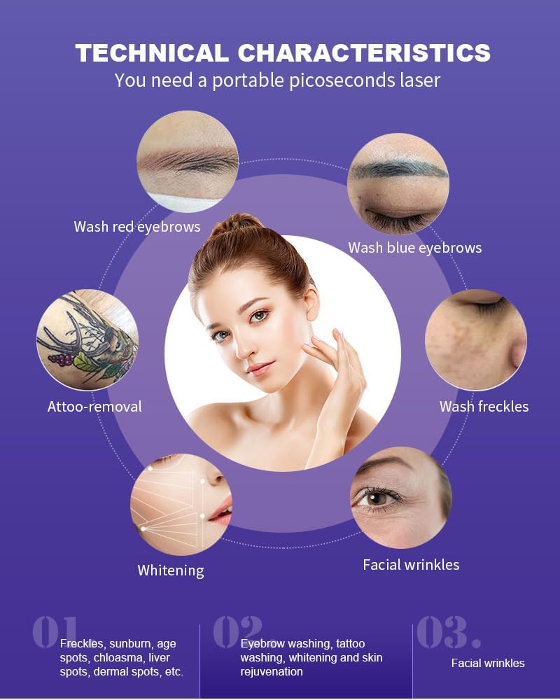 Picoseconde snelheid: Het op picoseconde-niveau hoge snelheids verpletteren van groot pigmentcelweefsel dat in uiterst kleine fragmenten splijt, kan in een kortere periode zijn om properder melanine te verwijderen, zonder de huid te beschadigen.