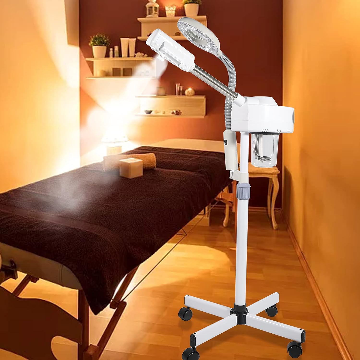 1. Combinatie van gezichtsstomer en vergrootglas voor een professionele huidverzorging thuis.
