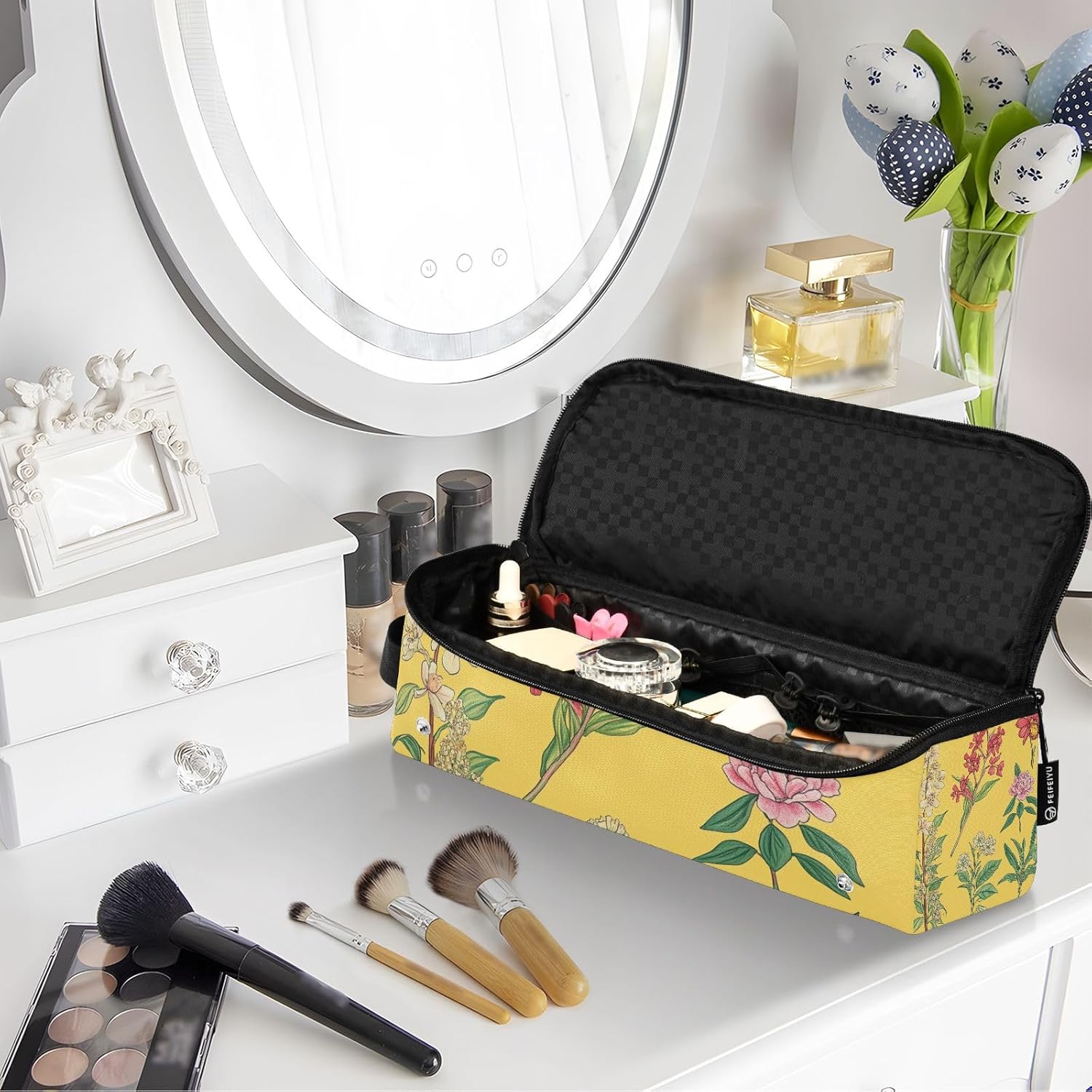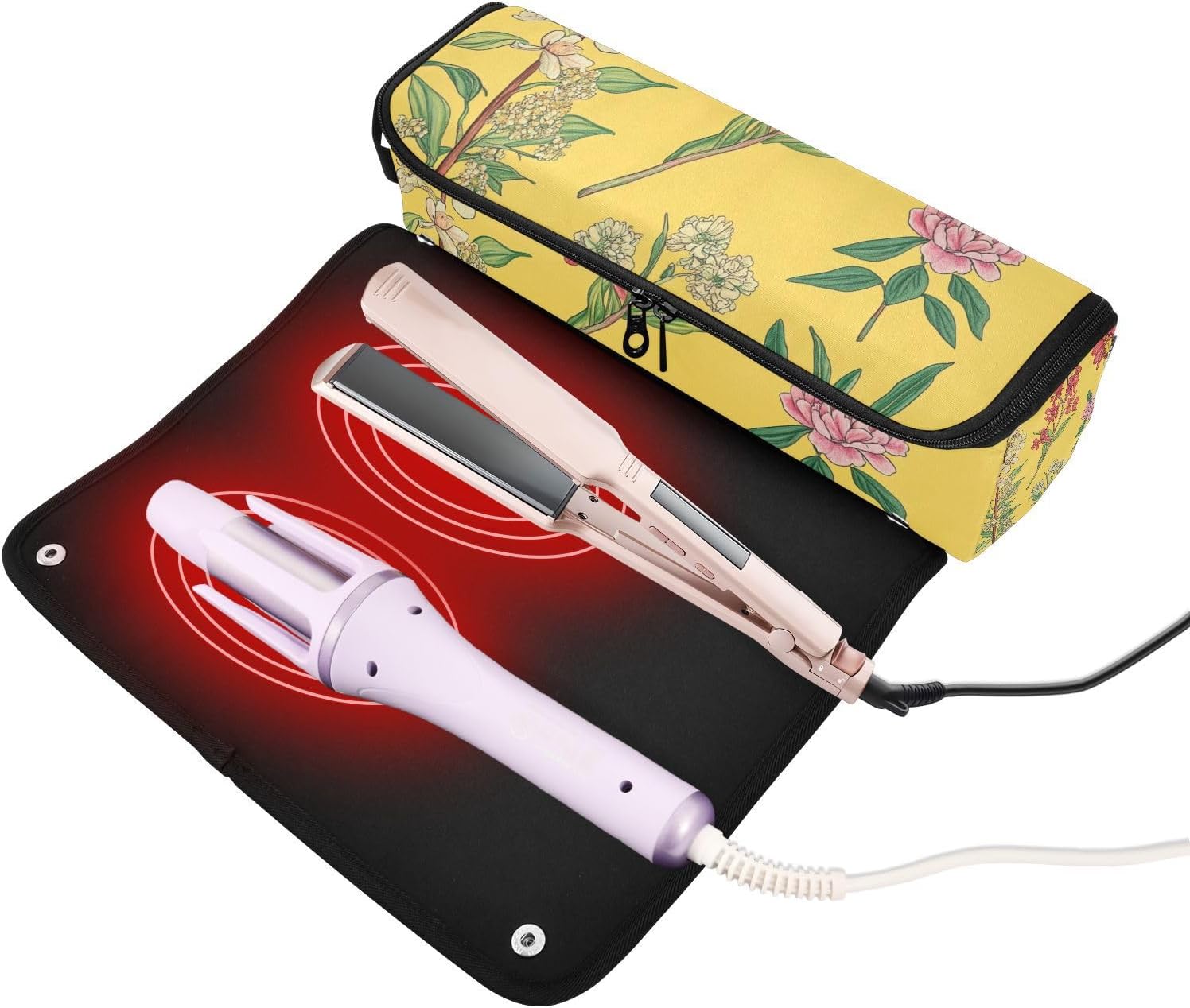 2 in 1 Haargereedschap Organizer met Hittebestendige Pad Grote Capaciteit Haarstijltangen Organizer voor Hot Tools Krultang Flat Irons Haar Volumizer Styler, Rose Pioenen Geel