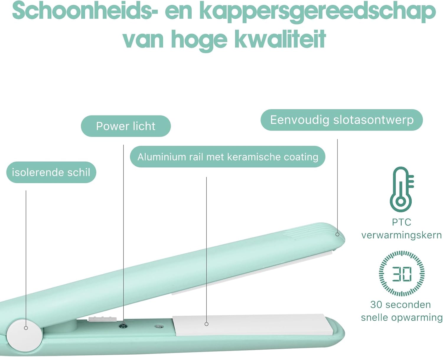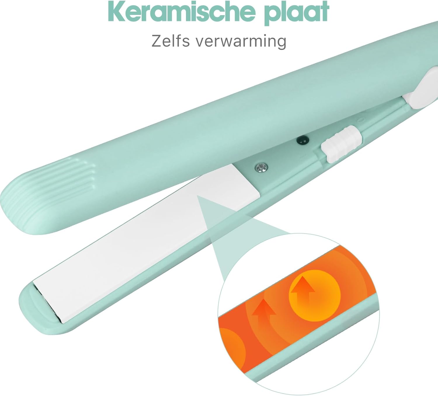 2-in-1 mini Stijltang, Strijkijzer Haar Stijltang, kort haar stijltang voor alle haartypes, kort haar, pony, Lijnlengte 1m voor Europese stekker (groen)