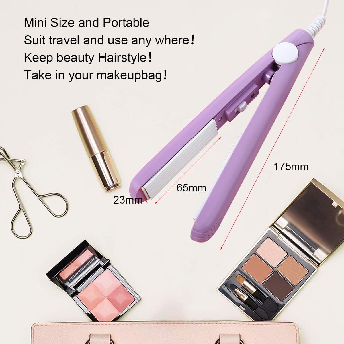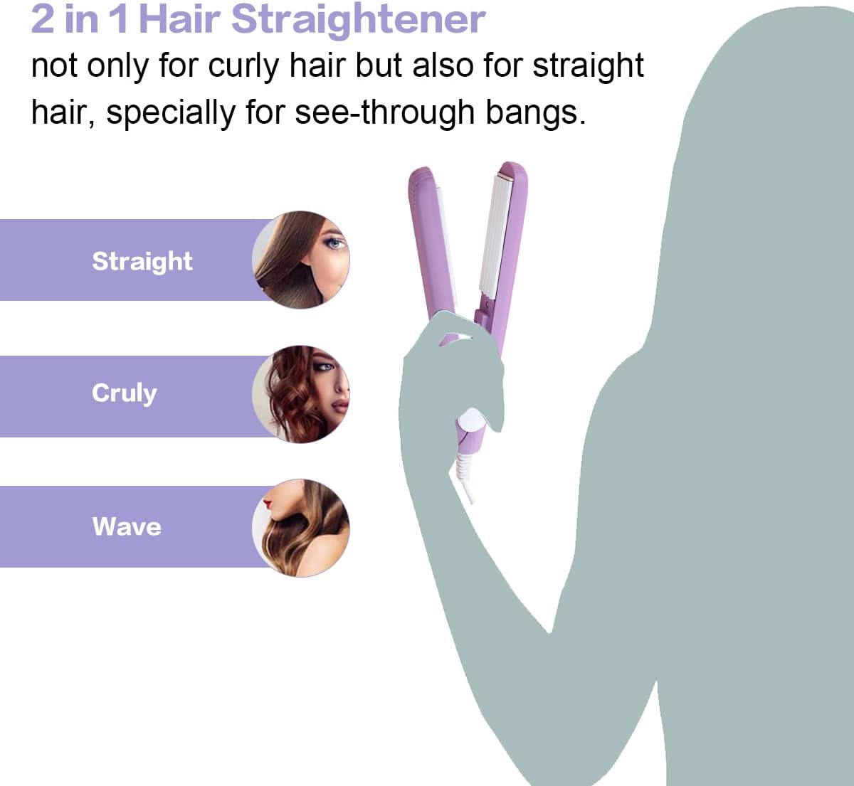 2-in-1 stijltang, stijltang van keramiek, voor glad of krullend haar, mini-stijltang, voor lang en kort haar, draagbare krulspelden, geschikt voor alle haartypes (paars)