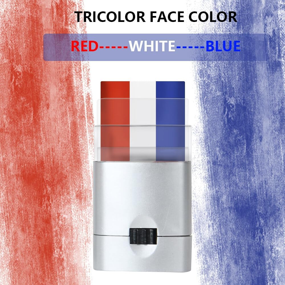 Blauwe, witte en rode make-uppen: onze blauwe, witte en rode gezichtsbalken bieden intense en levendige kleuren, zodat je je onderscheidt van de massa. Of het nu bij een voetbalwedstrijd of een nationaal feest is, je zult zeker indruk maken. Make-up pen in blauw, wit en rood, zodat het gezicht de hele dag meegaat. Of je nu gaat feesten, dansen of zingen, je kleuren blijven helder en fris, wat er ook gebeurt.