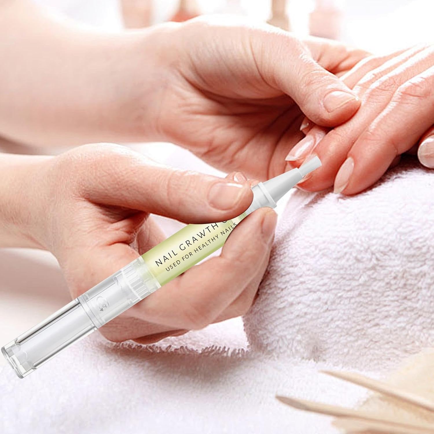 Nail Hydrating: Les de dorst van je nagels met onze groeiolie die diep hydrateert, waardoor ze zachter en soepeler worden. Dit voedende ingrediënt bevordert een gezonde nagelgroei terwijl het hun flexibiliteit verbetert en breuk voorkomt