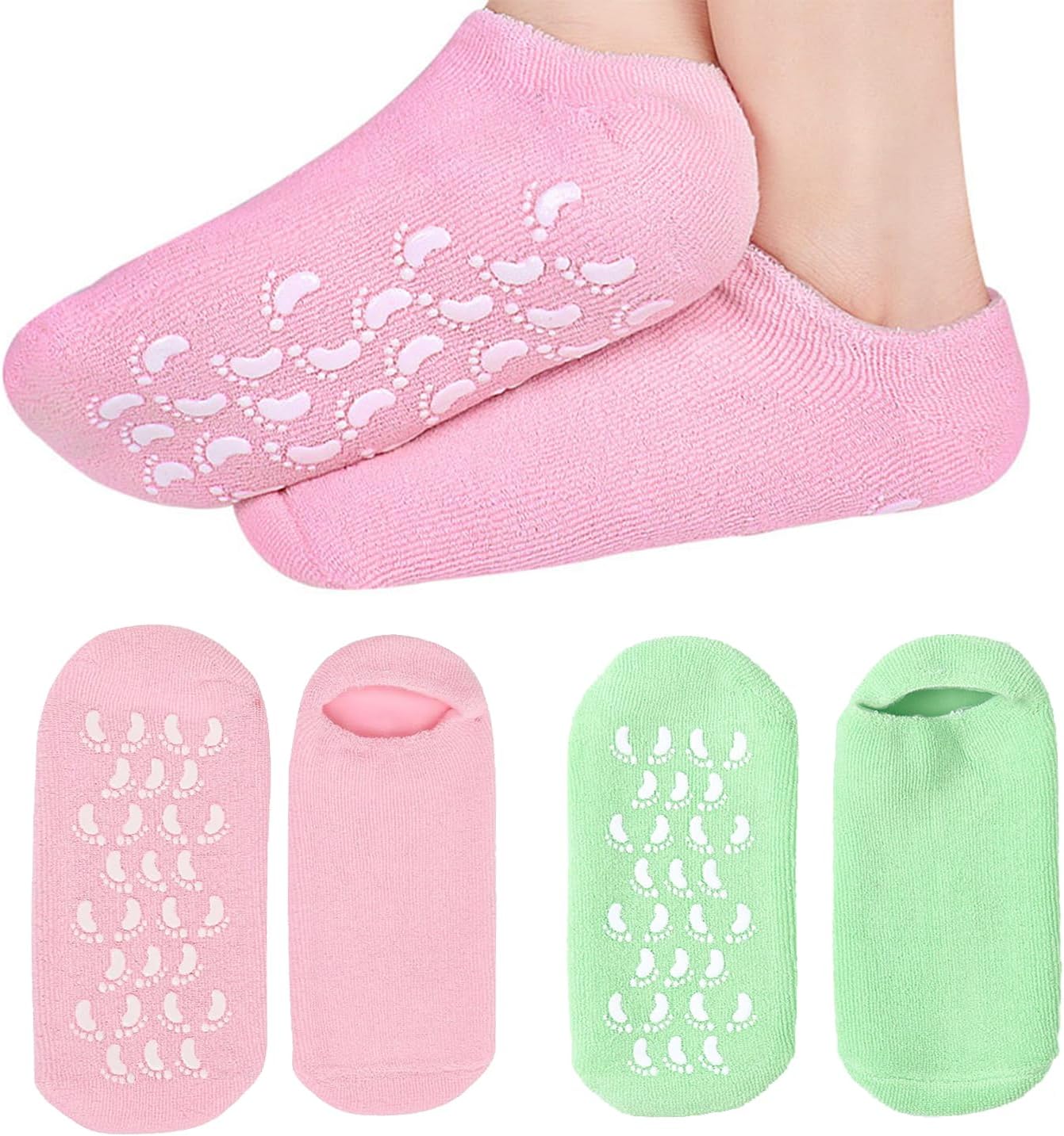 You will receive two pairs of moisturizing socks, pink and green, which can be cleaned and used repeatedly.