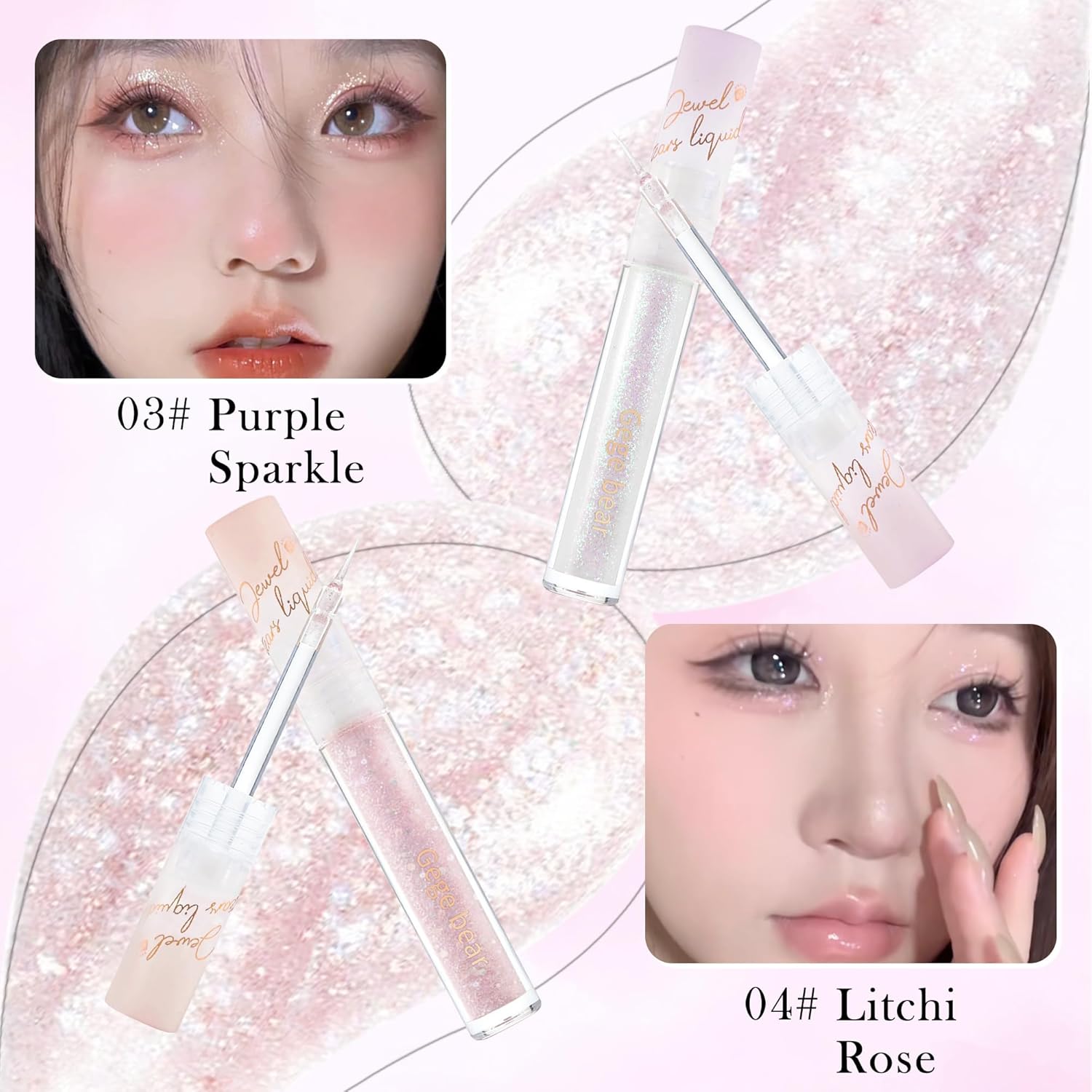 2 Pcs Liquid Glitter Eyeshadow, Diamond Eyeshadow & Glitter Liquid Eyeliner Set for Eye Lighting, Shiny Highlight, Metallic Liquid Eyeshadow, Glitter Eye Makeup for