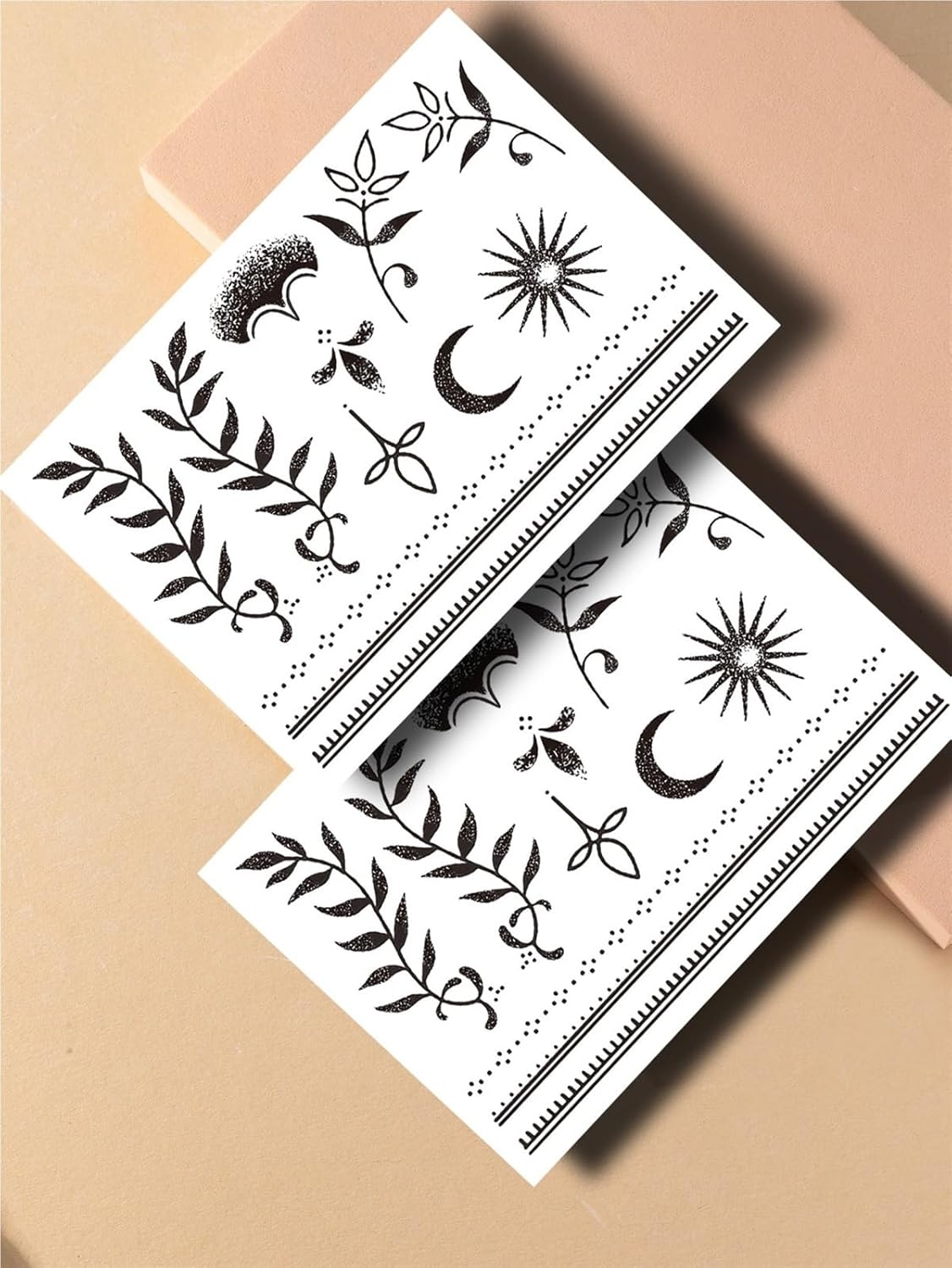 2 Sheets Moon Stars Sun Pattern Tattoo Stickers Waterproof Temporary Tattoos For Men Women Hand Arm Fake Tattoos(2PCS 02)