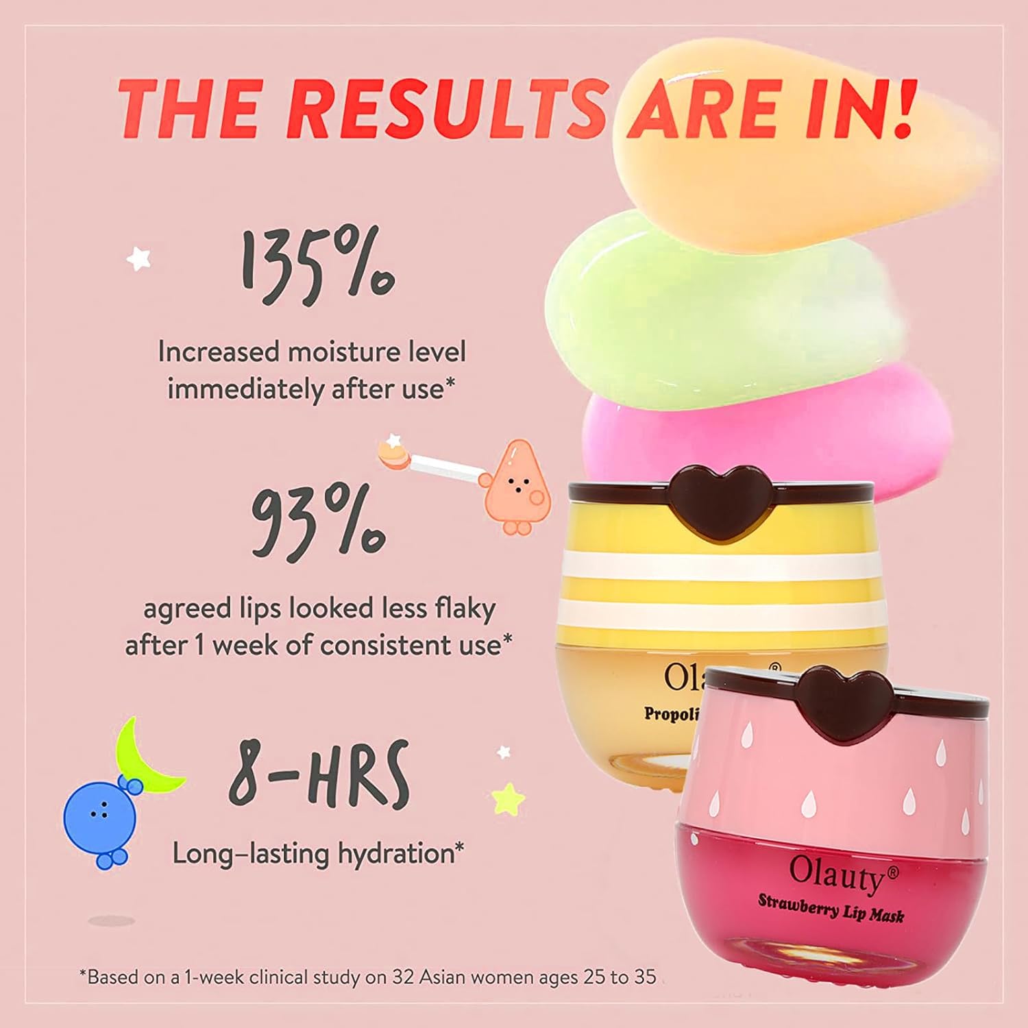 Natuurlijke ingrediënten: ons lipmasker bestaat uit puur natuurlijk propolis-extract, vitamine E en aardbeienessence houden de lippen gehydrateerd, kalmeren de lippen en zorgen voor een hydraterend effect.