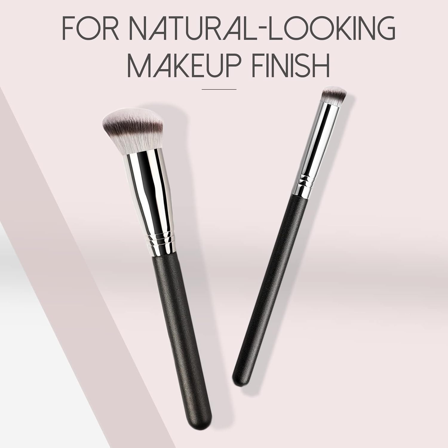 Foundation Brush: Ontworpen met de schuine borstelkop, deze foundation borstel past bij de kromming van uw gezicht bij het aanbrengen van een verscheidenheid aan cosmetica. Geen overmatige hoeveelheden foundation meer opzuigen of strepen achterlaten, deze foundation-make-upborstel geeft je een natuurlijk ogende make-upafwerking.