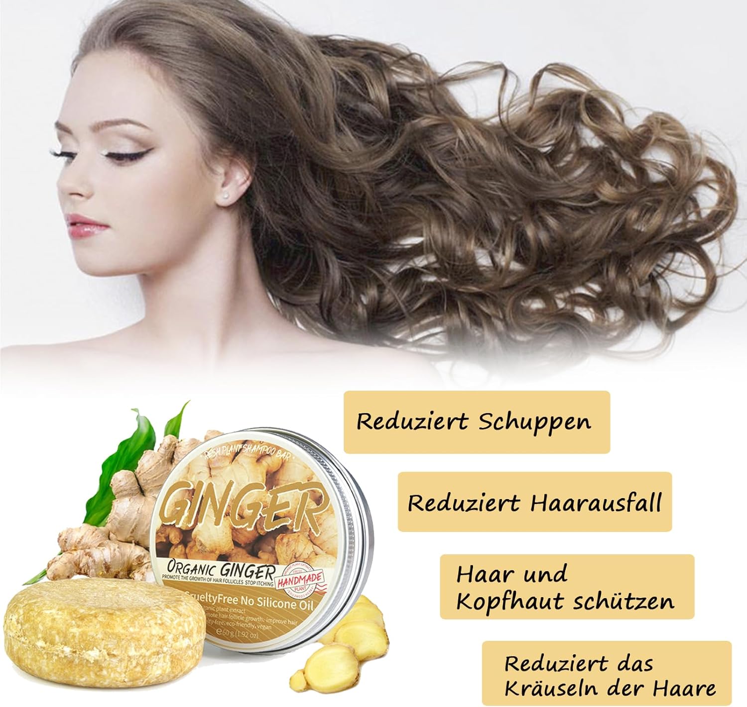 Hergroei van het haar: de gemberplanten-shampoo zeep helpt haaruitval te voorkomen. De gemberessentie versterkt elke haarzakjes en haarwortels en helpt je haar terug te groeien. En laat je haar gezonder en sterker opgroeien, terwijl je tegelijkertijd de haarstructuur verbetert.