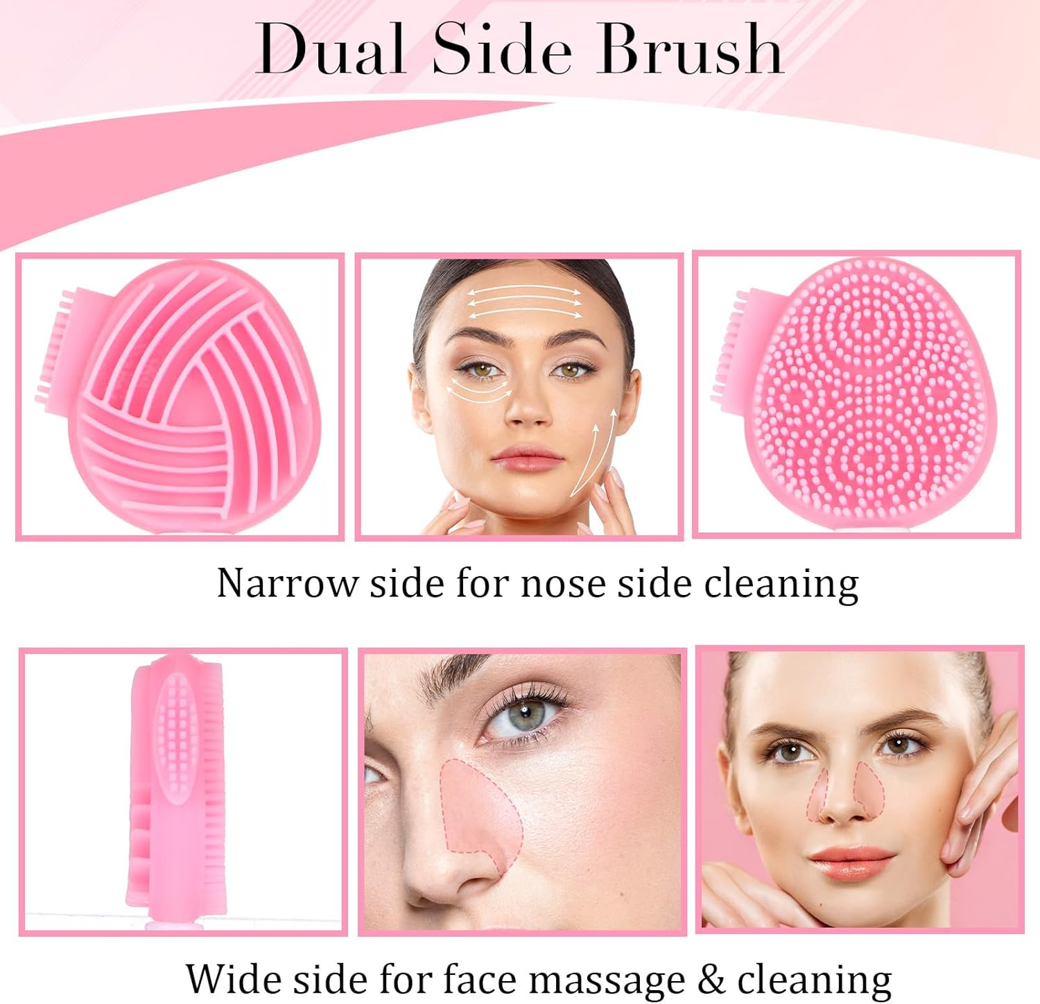 Veelzijdig huidverzorgingstool: verbeter je huidverzorgingsroutine met handmatige gezichtsreinigingsborstel voor vrouwen. Elke set bevat twee gezichtsreinigingsborstels van hoogwaardige siliconen, die de functies gezichtsreiniging, mee-eterverwijdering, peeling en massage combineren. Deze siliconen peelings maken de huid zacht, bevorderen de doorbloeding van het gezicht en laten een gladder en verfrisser huidgevoel achter.