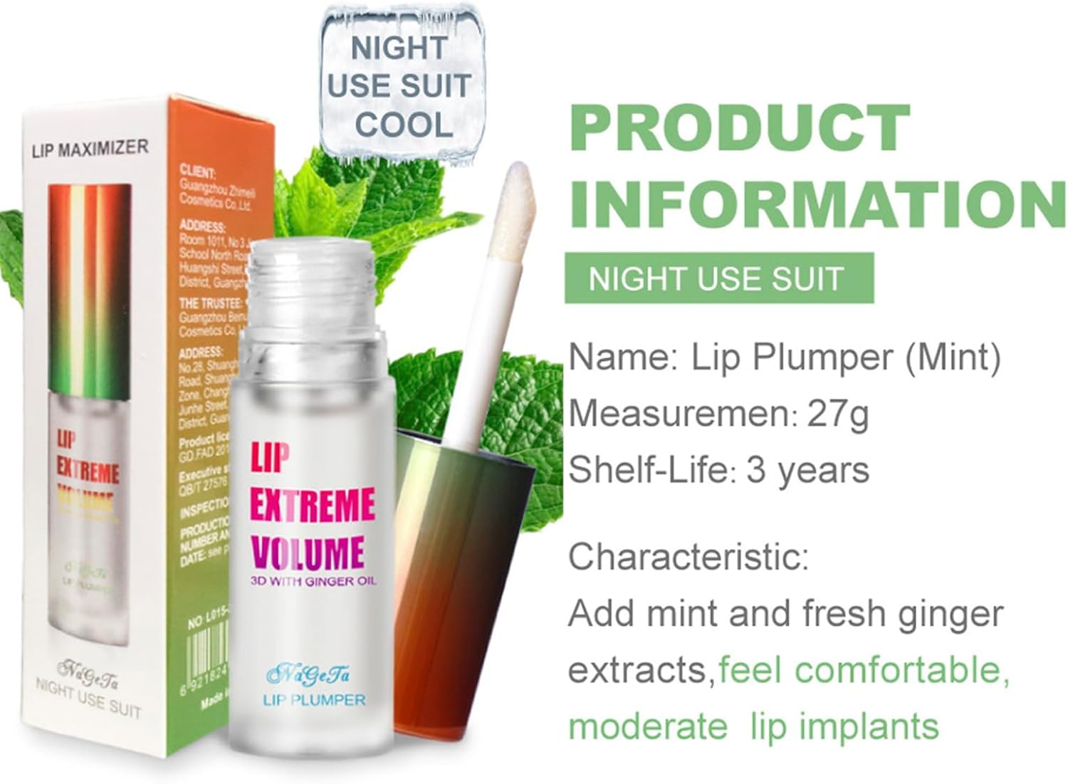 Lip Plumping Kit: de gele opvullende lipgloss bevat gemberessentie die je lippen een kort brandend gevoel geeft dat snel verdwijnt en je lippen direct voller en groter maakt. Heldere lipgloss bevat munt-essence. Gebruik muntlipgloss ‘s nachts als slapend lippenmasker om je lippen gladder en zachter te maken.