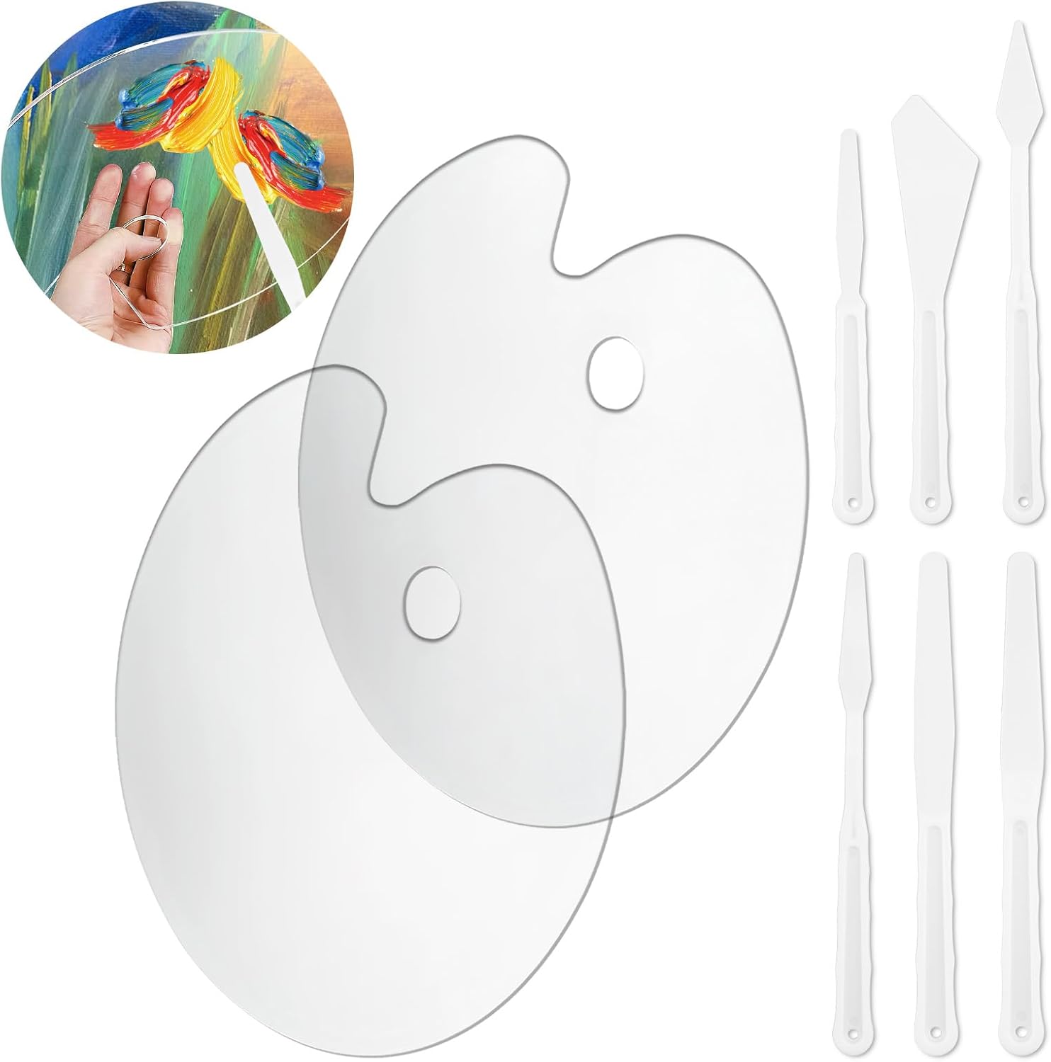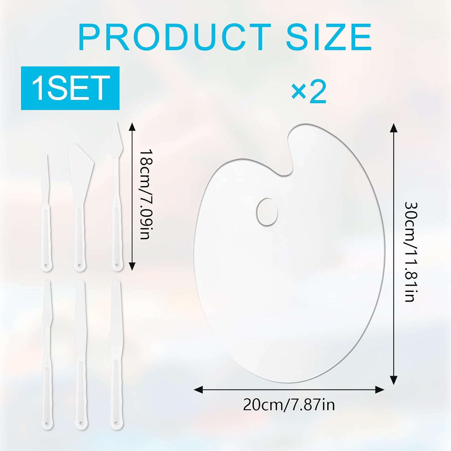 2 stuks mengpalet, acrylverf (20 cm × 30 cm) met 6 kunststof spatels, schildermes, schilderspatel, kunstschilderset voor doe-het-zelf kunsthandwerk, schilderen, kunstenaars en knutselaars