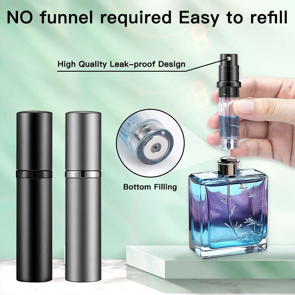 【Leak-proof】Refillable parfum verstuiver, met hoge-precisie metalen drukventiel kan automatisch sluiten na het volledig vullen en effectief voorkomen van lekkage, kan niet per ongeluk worden geloosd, terwijl in uw portemonnee, rugzak, tas of andere plaats belangrijk voor je, en zelfs bestand tegen de druk tijdens de vlucht.