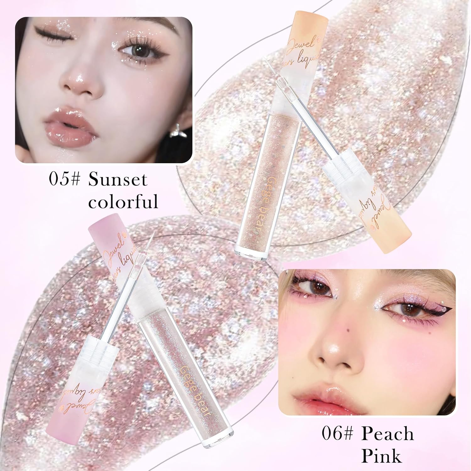 2 Stuks Vloeibare Glitter Oogschaduw & Eyeliner Set – Diamond Oogschaduw voor het Oplichten van de Ogen, Glanzend Highlight, Metallic Vloeibare Oogmake-up