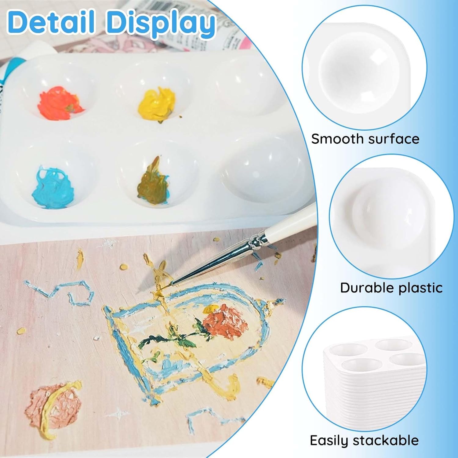 20 stuks mengpalet, acrylverf, rechthoekig, kunststof mengpalet, kleurenmengpalet, schilderen met 6 mengvelden (wit)