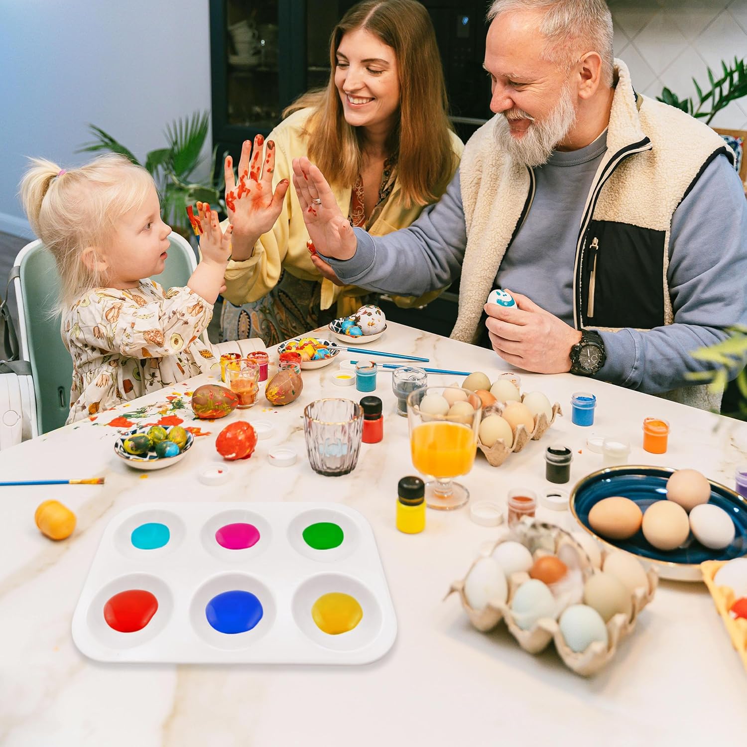 Duurzaam materiaal: het kleurenmengpalet is gemaakt van robuust kunststof, milieuvriendelijk en duurzaam, met gladde, onbreekbare oppervlakken en randen, gemakkelijk te reinigen en herbruikbaar voor acryl-, water-, olie- of gezichtsverf, ideaal voor knutselprojecten en feestjes.