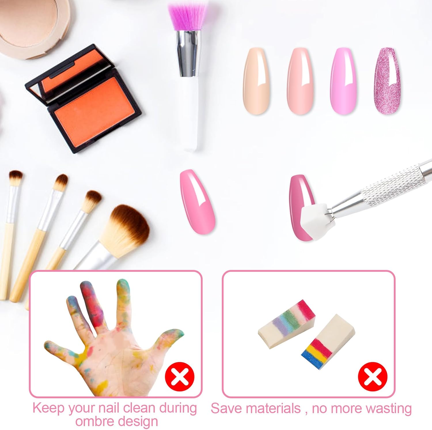 Eenvoudig te gebruiken: dit gelnagelaccessoire is geschikt voor zowel professionele nagelontwerpers als beginners. Hiermee kunnen gebruikers met gemak perfecte ombre-nageldesigns maken en het uiterlijk van elk nageldesign verbeteren