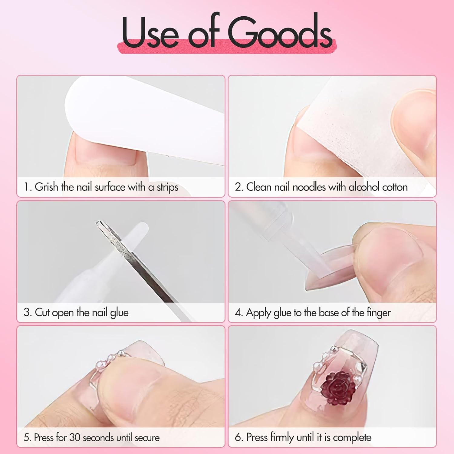 4. Eenvoudig in gebruik: de vierkant gevormde korte nepnagels kunnen in enkele minuten met lijm worden aangebracht, zonder op een afspraak in de nagelstudio te hoeven wachten. Je kunt de grootte en vorm van de kleefnagels beter controleren, zodat ze perfect op je nagels passen.