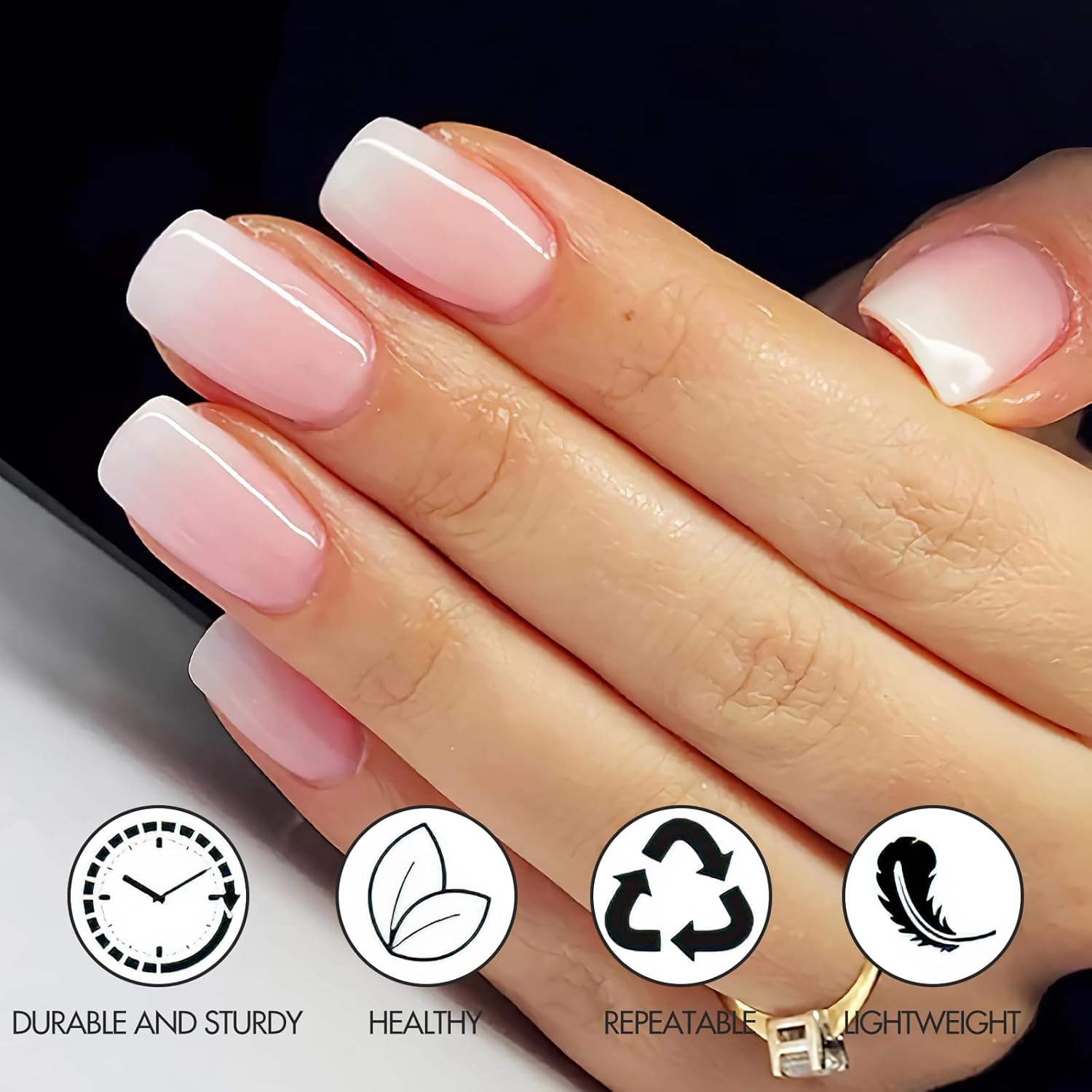 FRENCH ONTWERP: deze kunstnagels zijn ontworpen in elegante gradiënt wit-roze, wat ze een natuurlijke uitstraling geeft. Ze zijn ideaal om je zelfbewustzijn in het dagelijks leven en op het werk te versterken. Perfect voor een snelle doe-het-zelf manicure of een dringende afspraak, deze kunstnagels bieden een geweldige manier om je nagels te verfraaien.