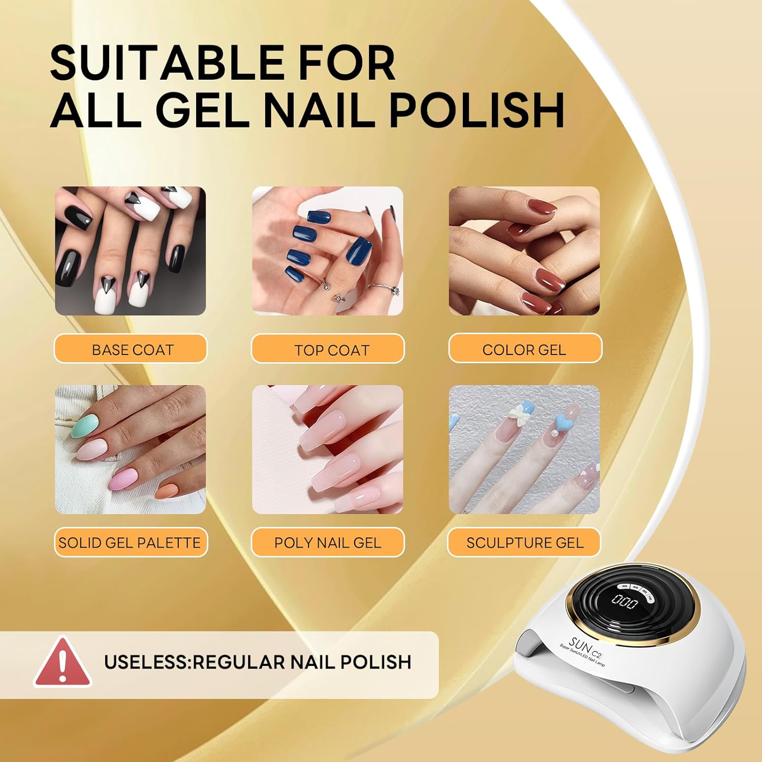 Versatile application: Our LED nail lamps for gel nails: UV nail lamp is used for most nail gels, such as primer, top coat, colour gel, build-up gel, acrylic gel, nail forming gel, nail modelling gel, rhinestone glue, shellac gel, etc., but not suitable for traditional nail polish glue. It is better to save time, energy and money anytime, anywhere for an excellent nail experience.
