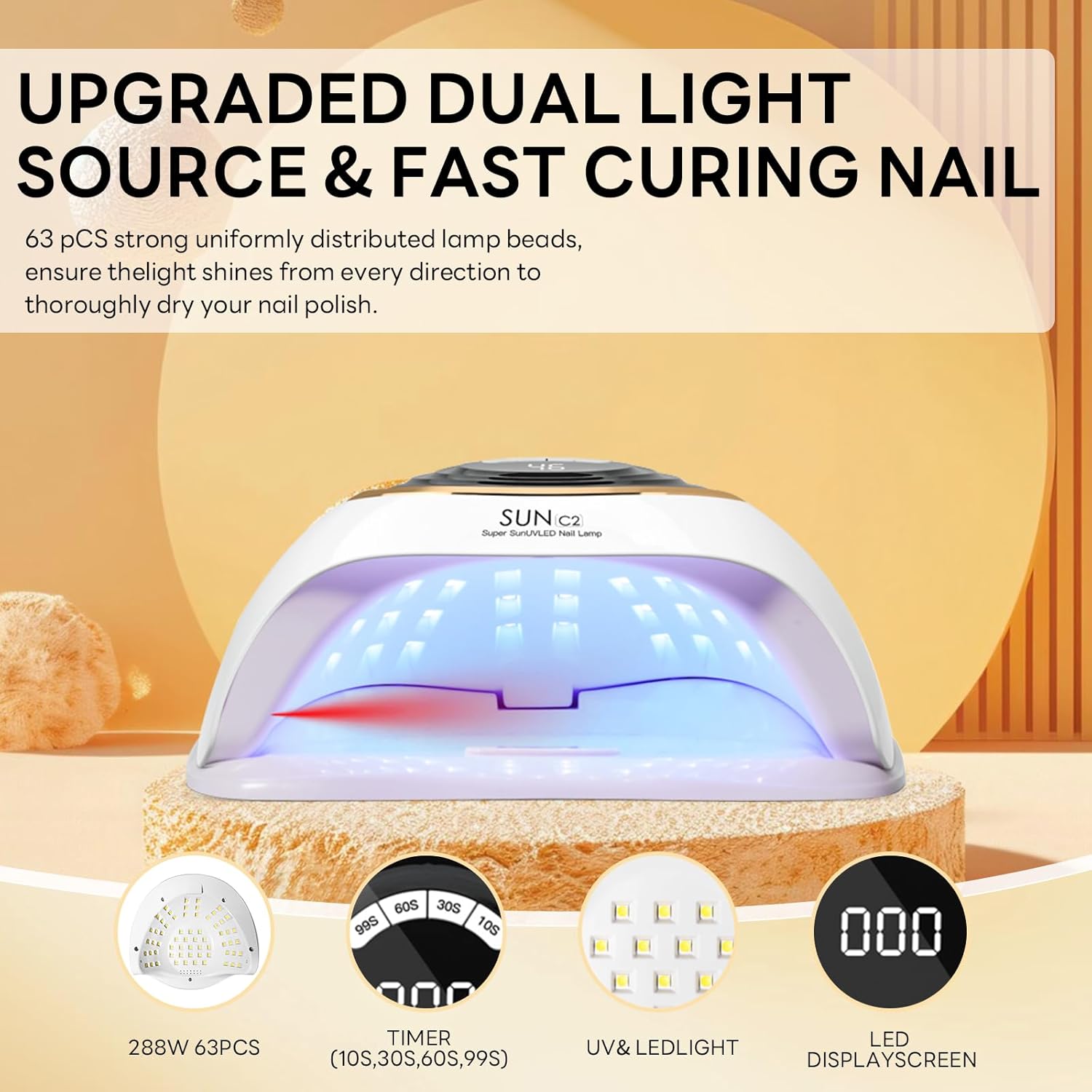 248W UV LED Nail Lamp, Gel Nail Lamp, UV Nail Dryer with 63 Beads, Automatic Sensor and 4 Timer Settings, Perfect for Home and Salon (C2)