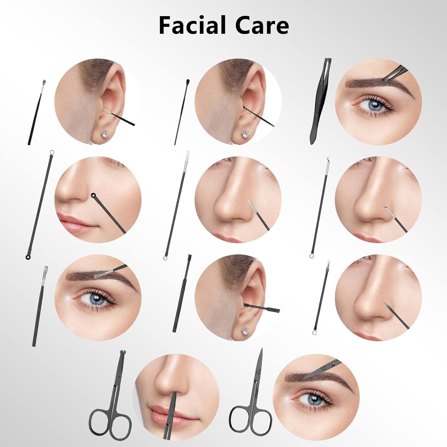 Multifunctioneel: deze manicure-verzorgingsset lost je behoeften op in één set, manicure, pedicure, wenkbrauwtrimmen, acneverwijdering, peeling, anti-acne. Om de levensduur van de nagelset te verlengen en het risico op infecties te verminderen, reinig en droog je het nagelgereedschap na gebruik. Leg het gereedschap terug in de tas als je ze niet gebruikt. Voor je veiligheid.