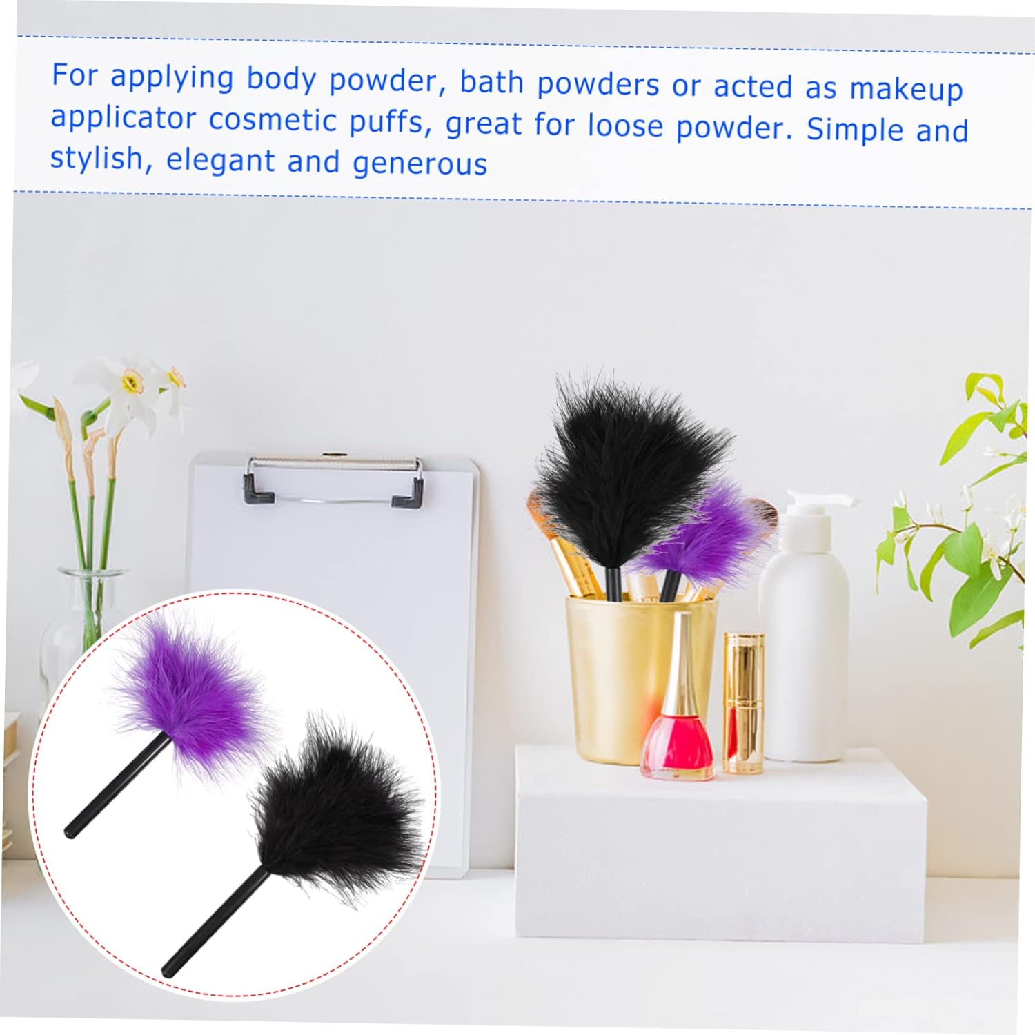 Cosmetische kwast: voor het aanbrengen van lichaamspoeder, badpoeders of als make-upapplicator cosmetische trekjes, losse poeder.